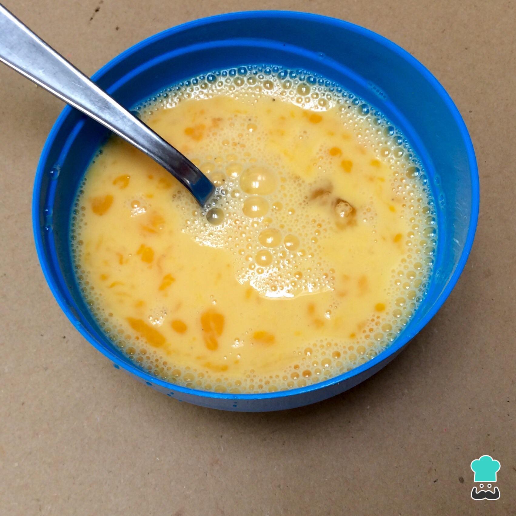 Em seguida, em uma tigela à parte, bata os ovos com o leite e tempere com sal e pimenta a gosto.