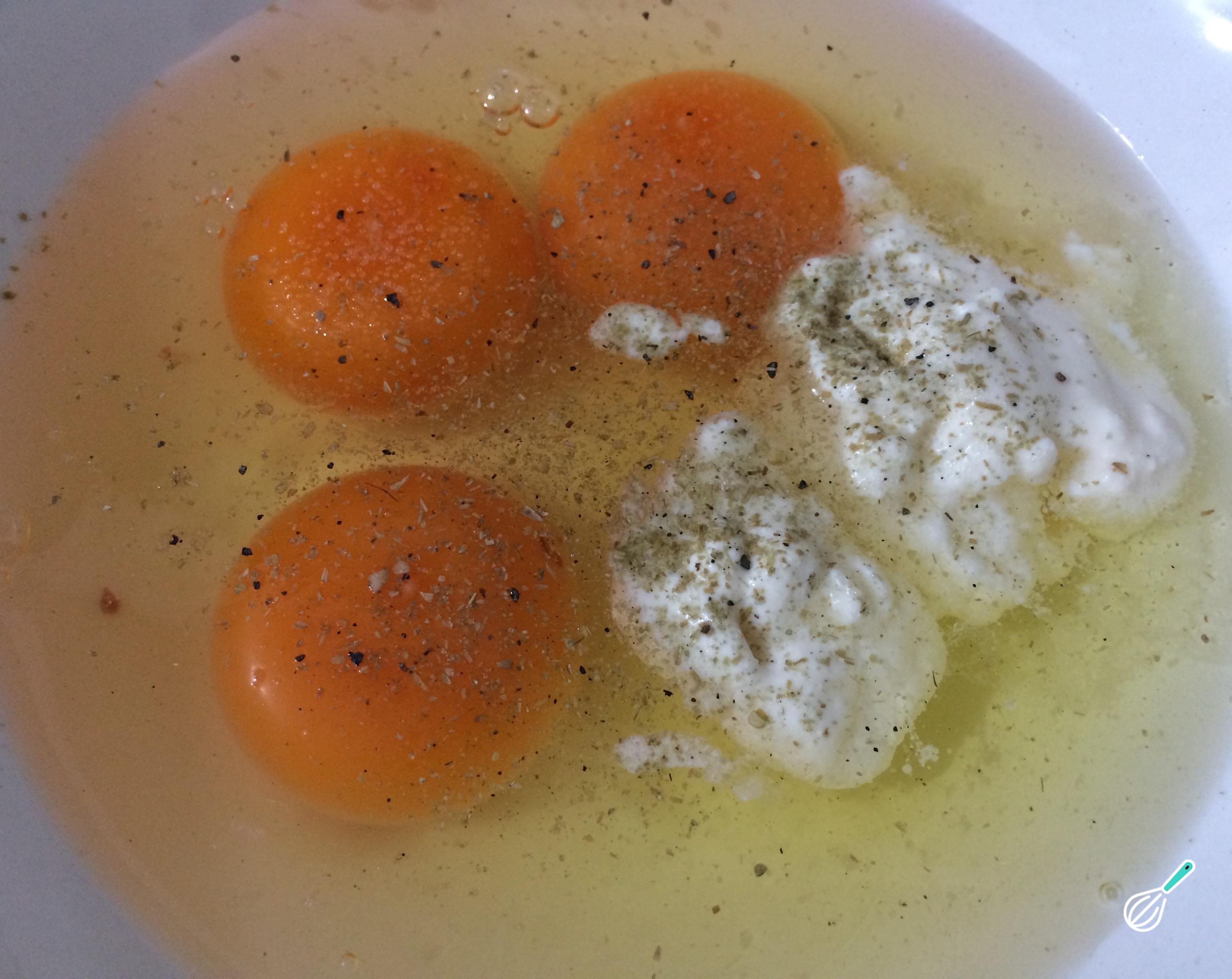 Bata os ovos com o creme de leite, sal e pimenta do reino agosto até obter uma mistura homogênea.