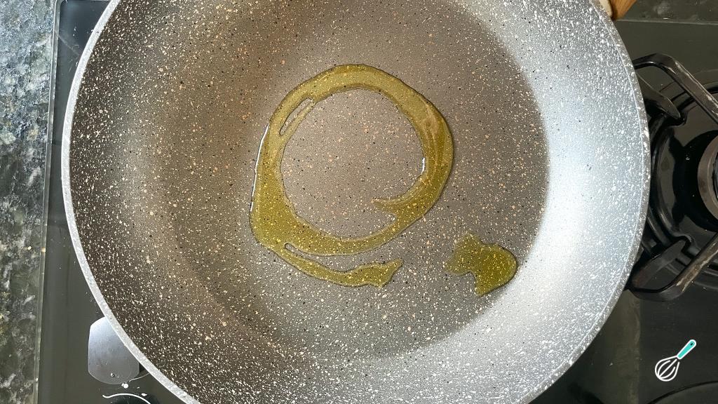 Aqueça uma frigideira com um fio de azeite.