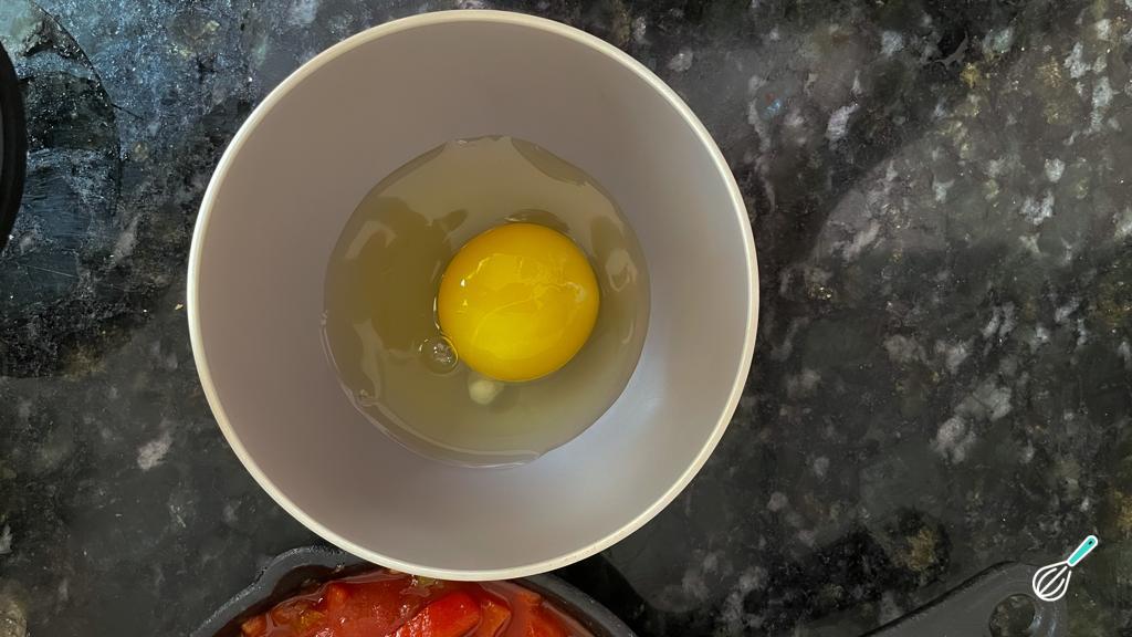 Coloque delicadamente o ovo ainda cru sobre o molho e leve ao forno preaquecido a 180 graus por 20 minutos ou até o ovo estar no seu ponto favorito.