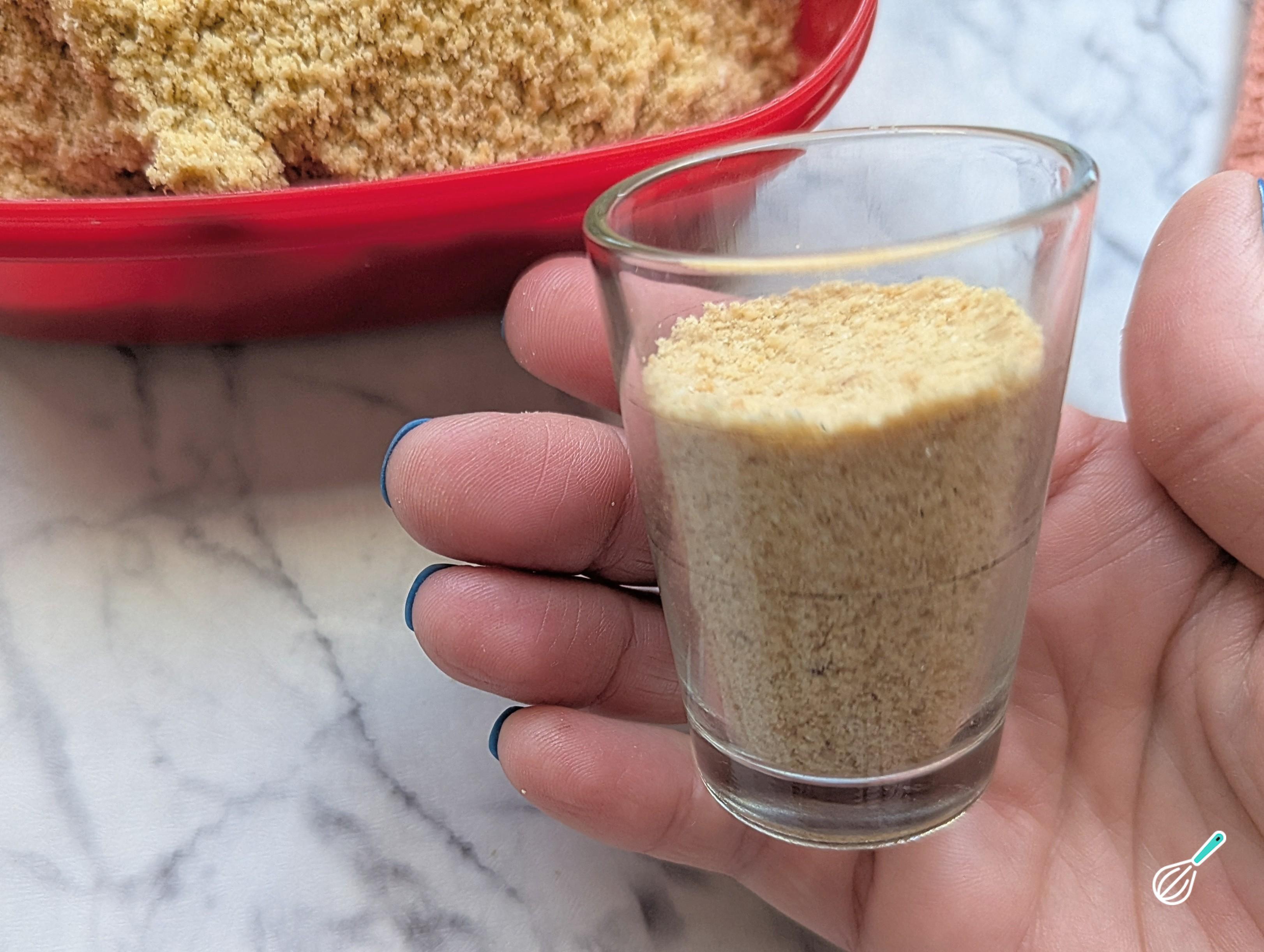 Adicione o açúcar mascavo e a farinha de mandioca torrada. Bata novamente por mais uns segundos, até que tudo esteja bem misturado e essa mistura comece a se compactar levemente.