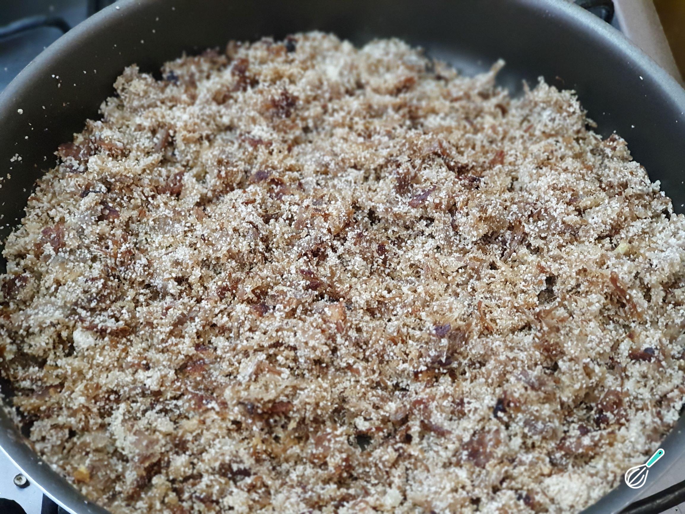 Lembrando que a paçoca básica (a nossa farofa), nada mais é que algum tipo de gordura como manteiga, banha, azeite ou óleo, carne salgada, que pode ser charque, carne seca ou carne de sol e farinha de mandioca. Mas nós podemos dar aquele toque de Chef e ir adicionando alguns ingredientes para deixar nossa paçoca ainda mais saborosa, como bacon, linguiça, tempero verde, coentro, entre outros temperos.