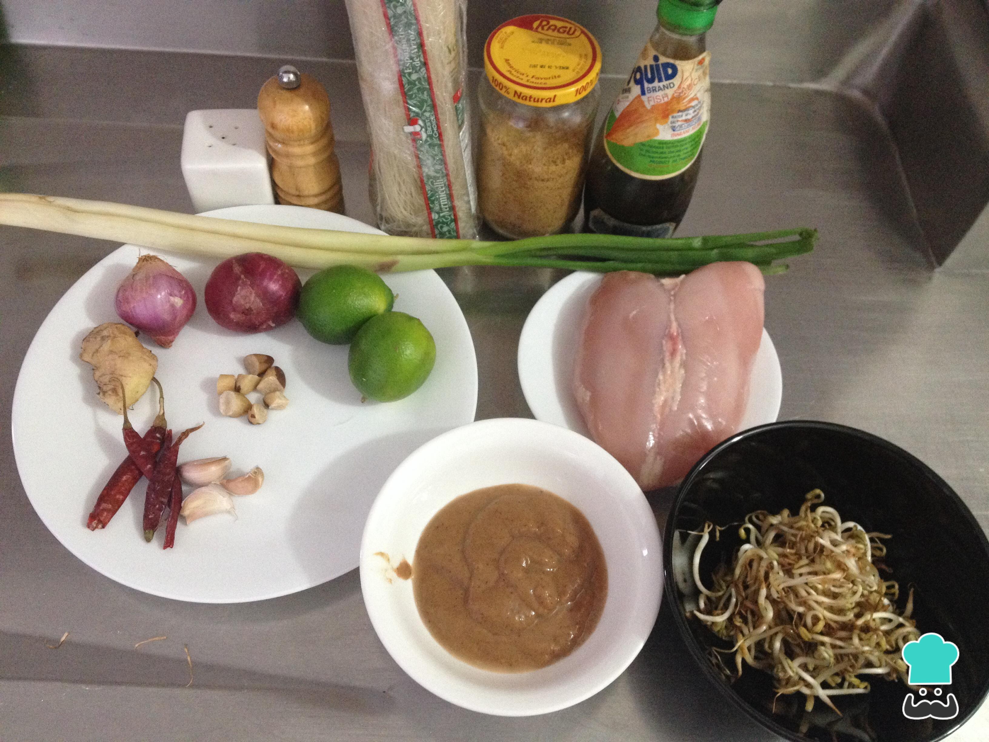 Receita de Pad thai tailandês com frango e tamarindo