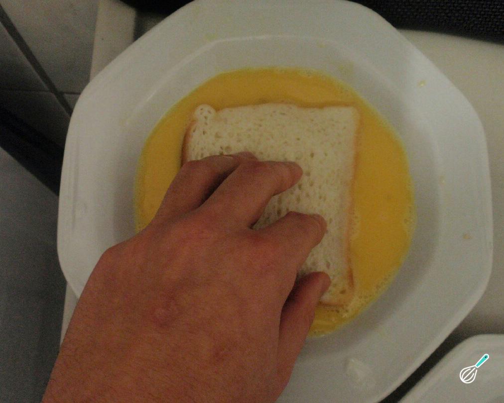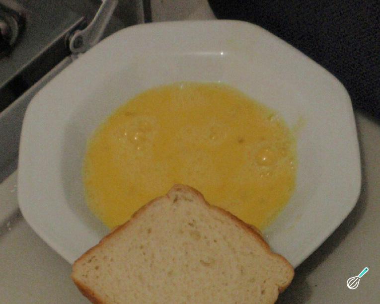 Depois passe as fatias no ovo, envolvendo-as de ambos os lados.