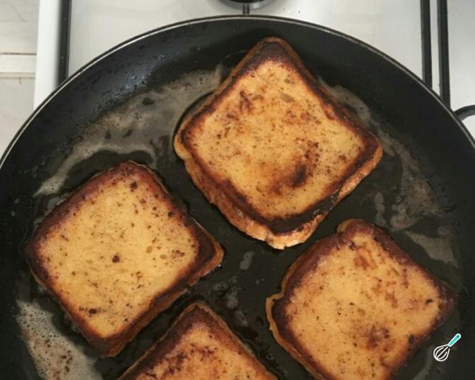 Derreta a manteiga numa frigideira em fogo médio e frite as fatias de brioche dos dois lados, até ficarem douradas (2-3 minutos).