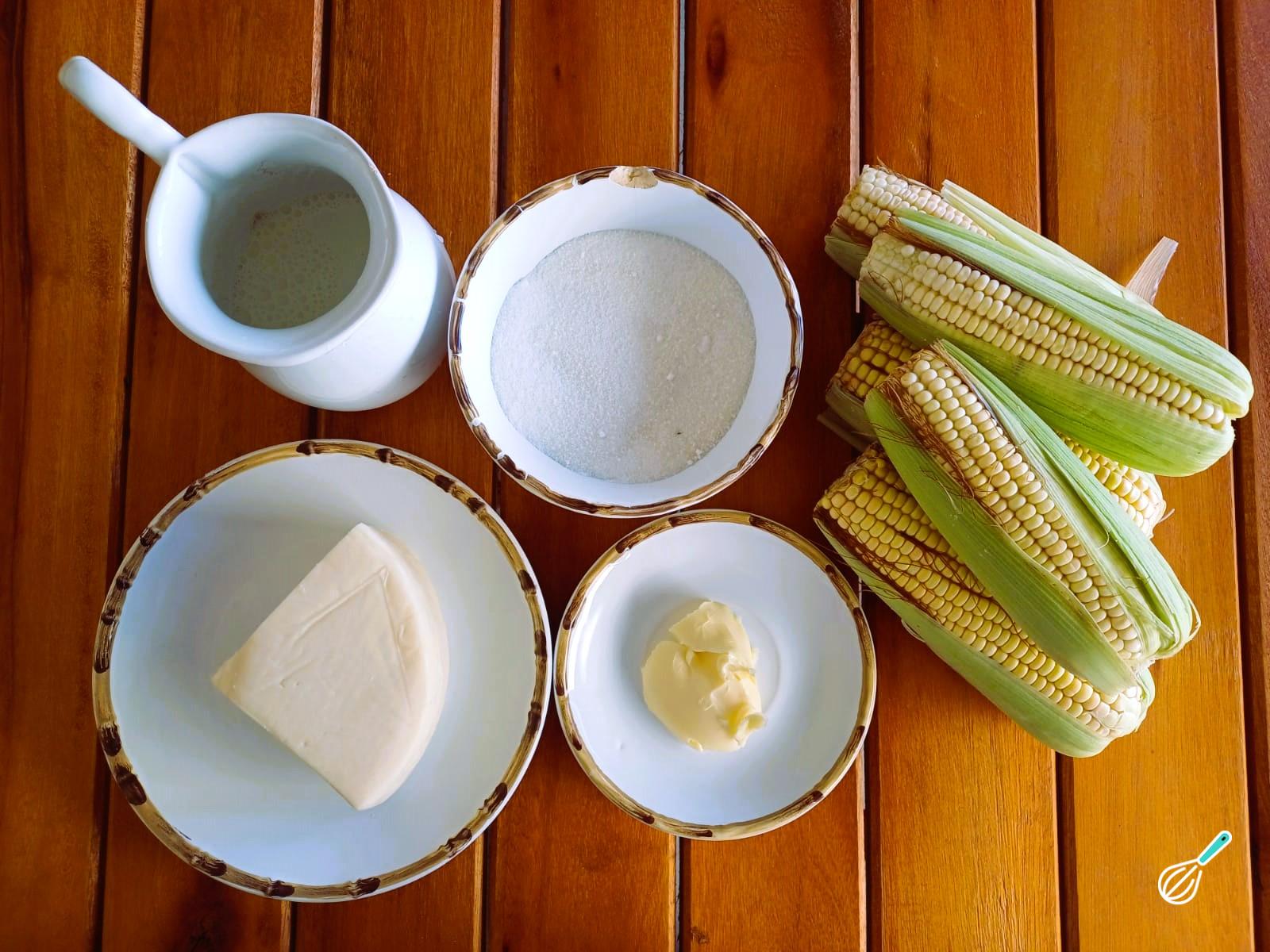 Reúna os ingredientes necessários para o preparo de pamonha com queijo.