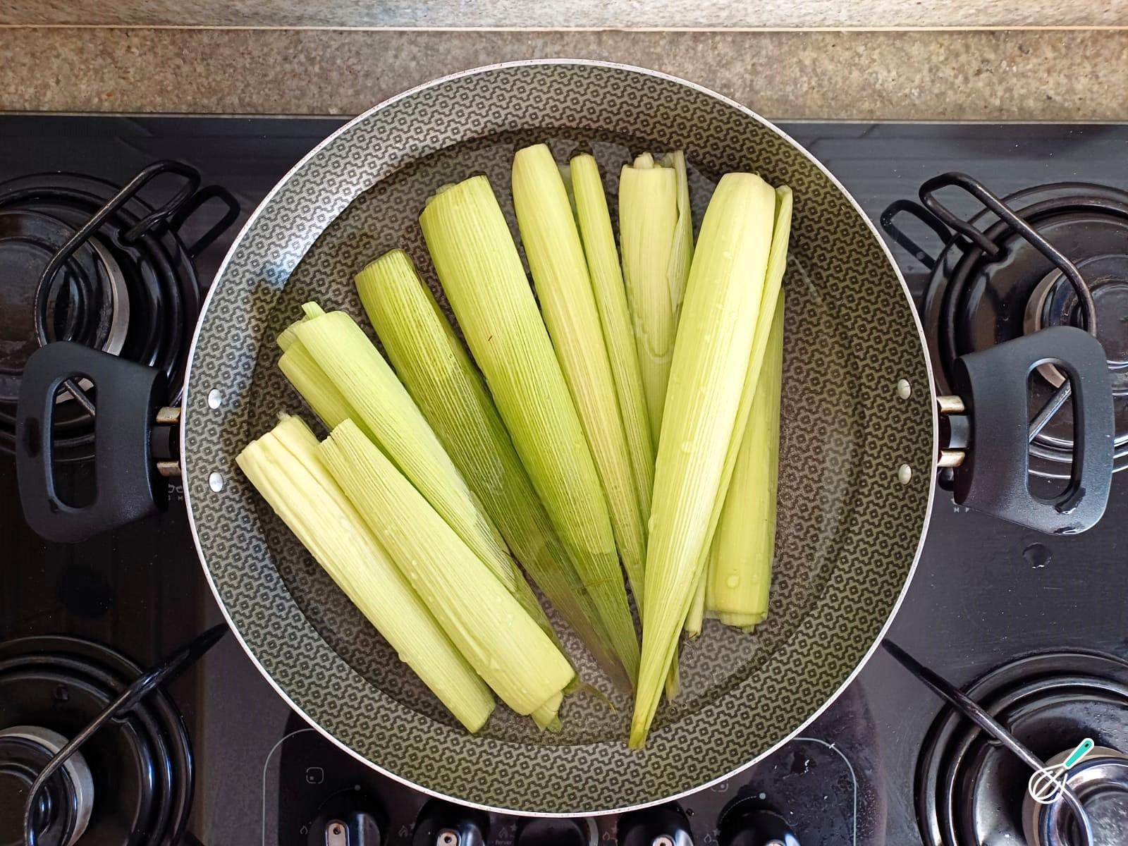 Dica: Você vai precisar da palha do milho para embalar, então escolha espigas com a palha inteira e sem danos.