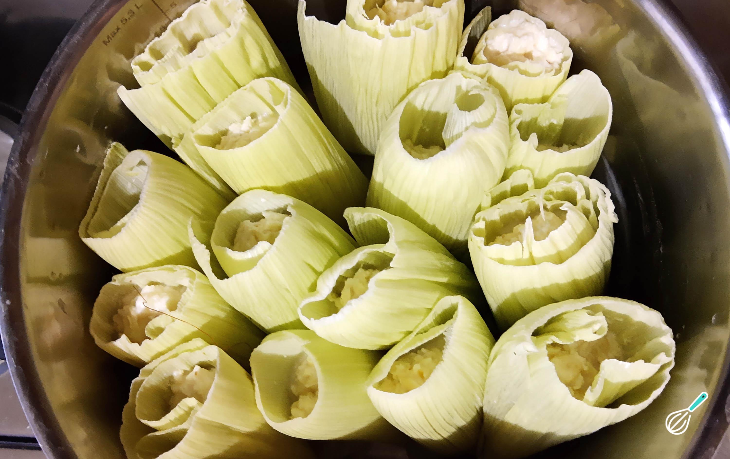 Dica: Não mexa nas pamonhas enquanto elas cozinham na panela, ou o recheio vazará.