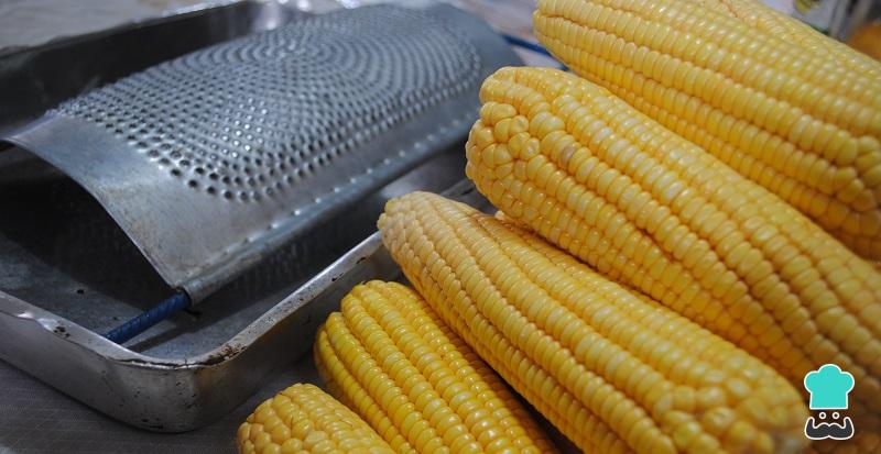 Rale as espigas, de preferência em um ralador grande, até chegar ao sabugo. Raspe o conteúdo restante com uma colher.