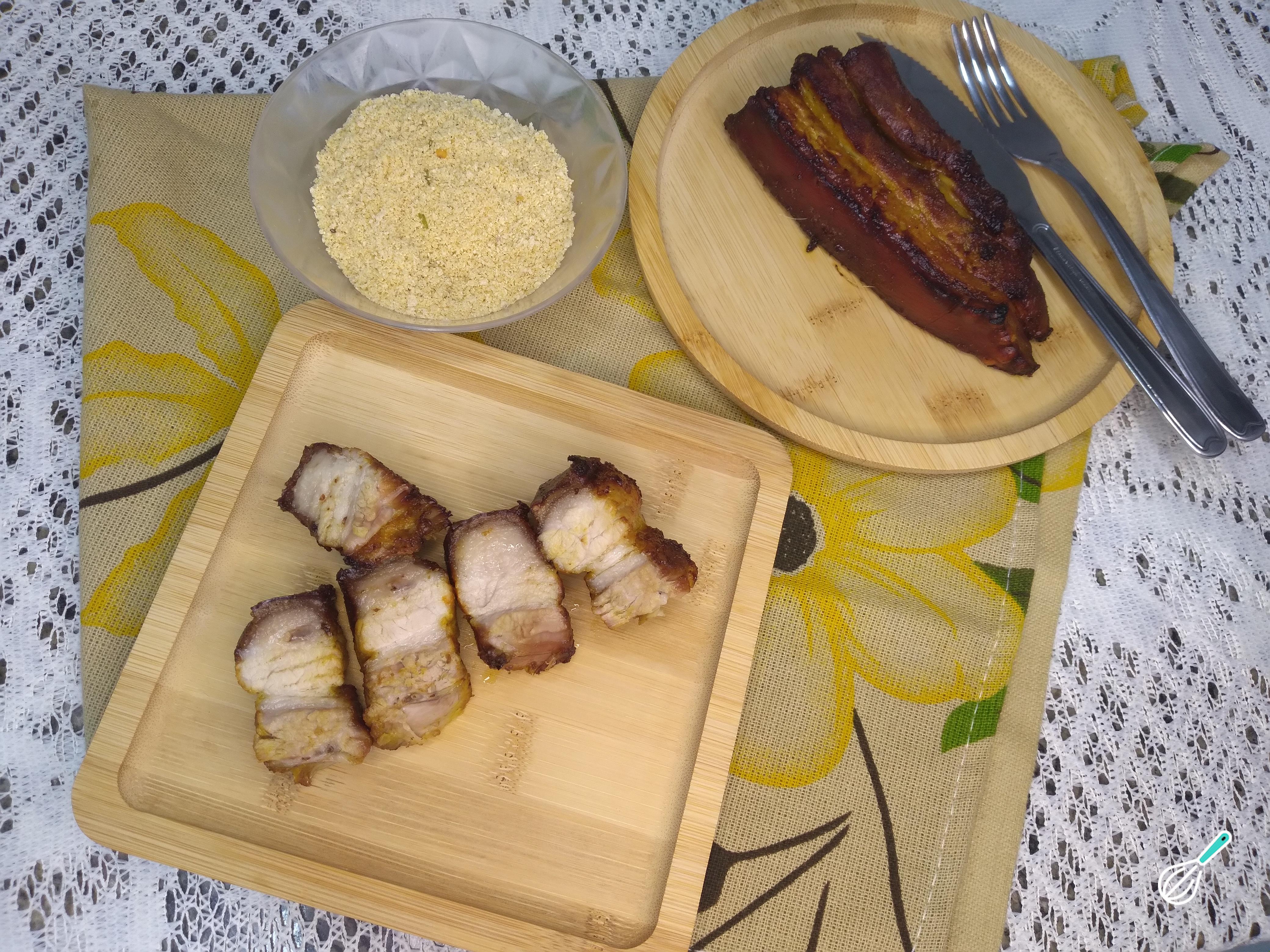 Muito bem temperada, preparada com açúcar mascavo, mostarda e outros temperos, essa panceta na air fryer é simplesmente deliciosa.