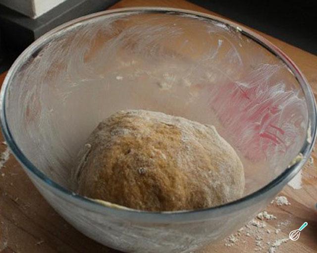 Quando os ingredientes anteriores estiverem integrados, adicione a manteiga e continue misturando. Faça uma bola com a massa e deixe fermentar em algum espaço morno durante 45 minutos ou até que você perceba que dobrou o tamanho.