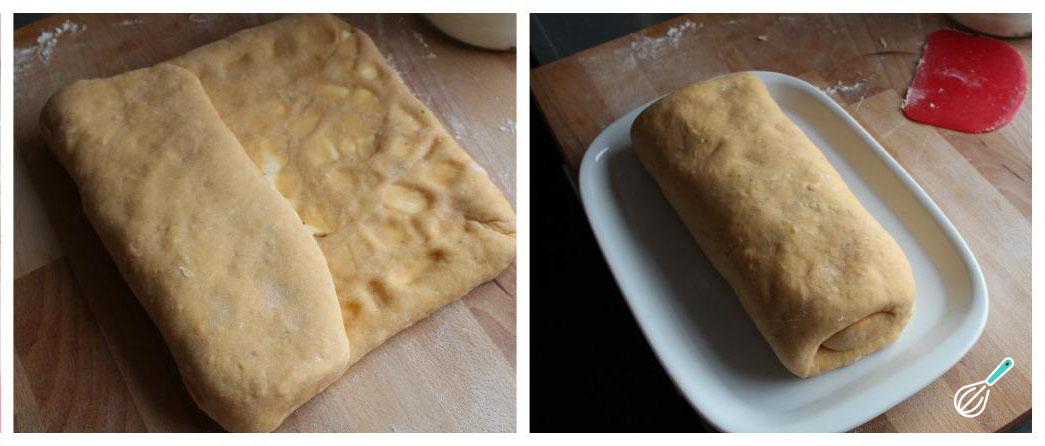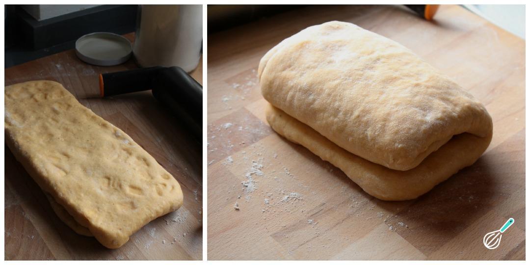 Passado o tempo de descanso, volte a dobrar a massa como você fez anteriormente. Deixe na geladeira durante mais 15-20 minutos.