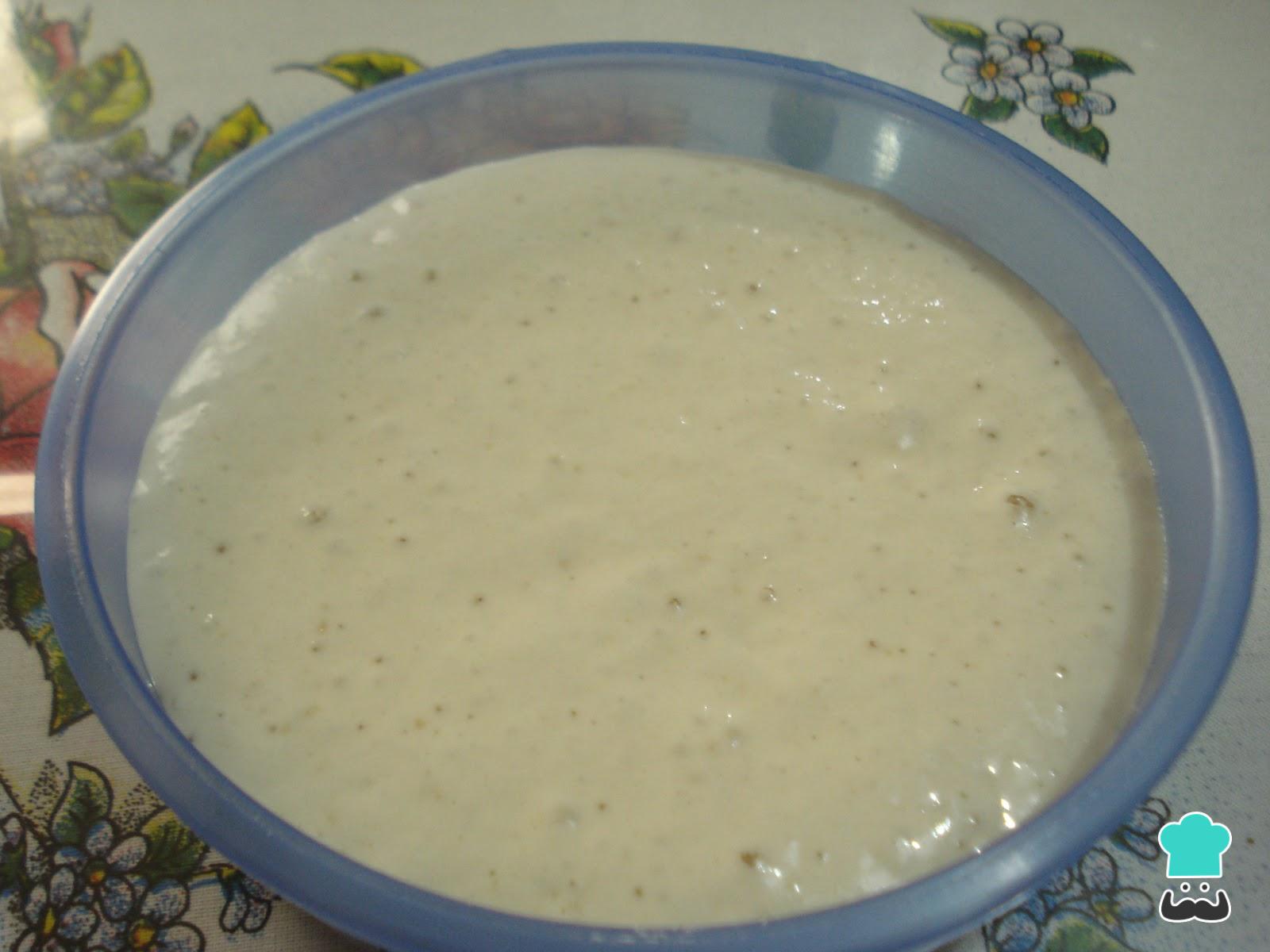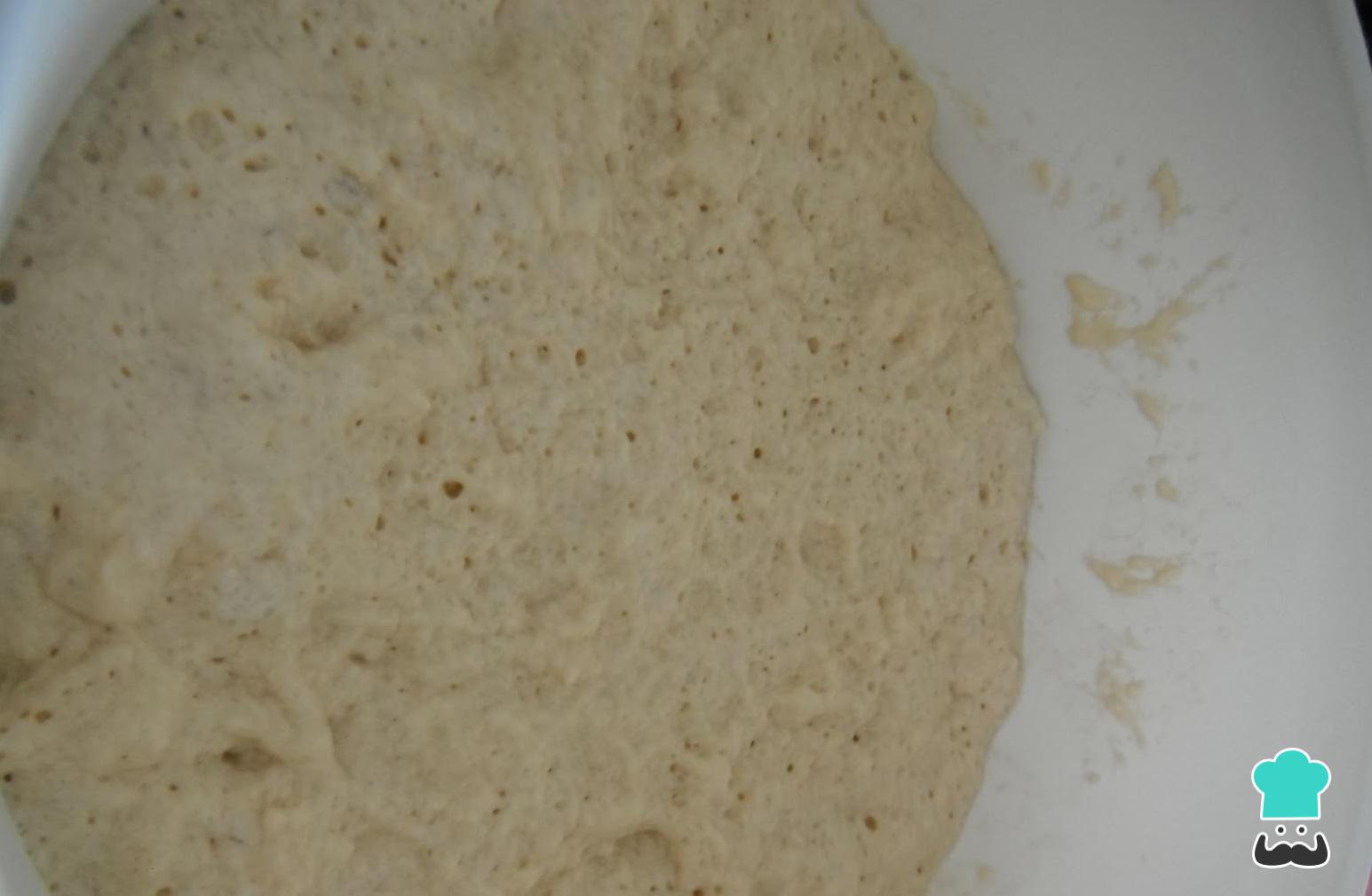 Para fazer panetone de frutas, comece por misturar o fermento com um pouco de água, açúcar e farinha. Cubra o recipiente e deixe descansar por 15 minutos.