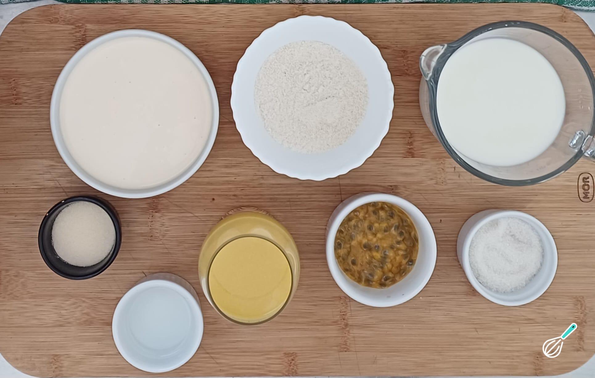 Separe todos os ingredientes necessários para preparar a panna cotta simples de maracujá.