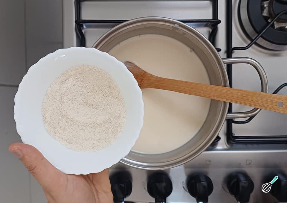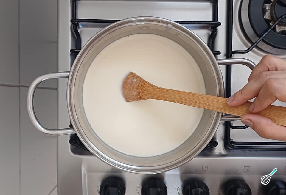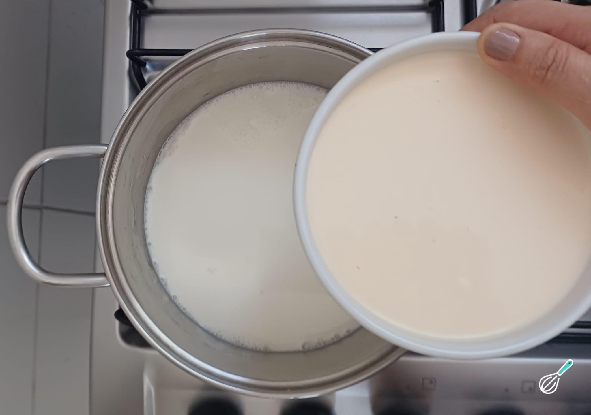 Junte a gelatina hidratada ao creme cozido anteriormente e misture bem, mantendo o fogo desligado.