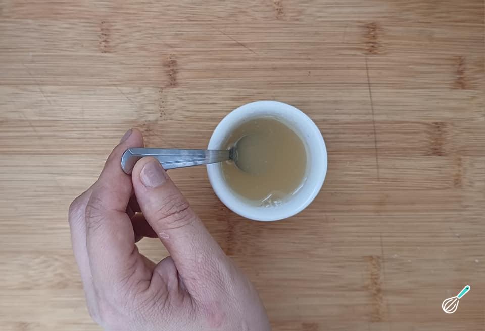 Hidrate a gelatina em pó com 5 colheres de sopa de água quente, misturando bem até ficar homogêneo.
