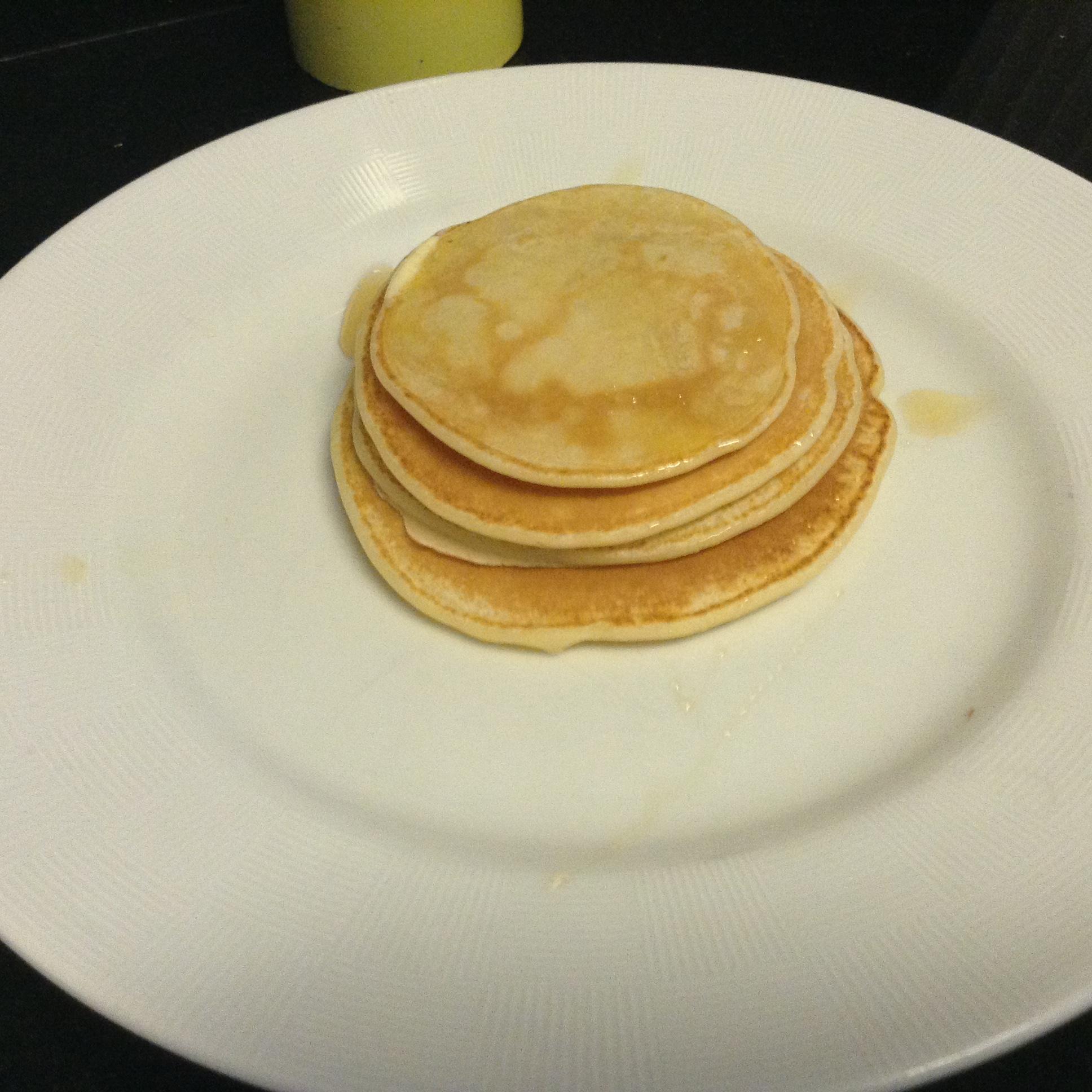 Quando a panqueca estiver esponjosa e dourada, retire para um prato e repita até esgotar a massa. Você pode servir estas panquecas americanas doces e fáceis com fruta fresca, manteiga, mel, geleia e muito mais. Escolha seu acompanhamento preferido e diga-nos o que achou. Bom apetite!