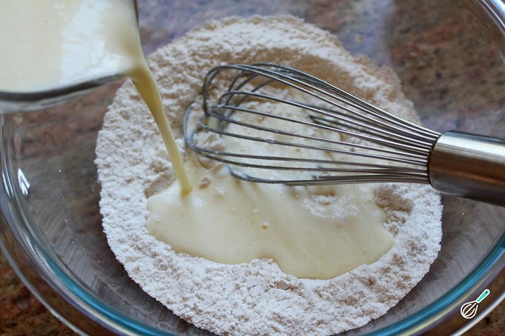 O resultado da massa das panquecas caseiras deve ser uma mistura homogênea, lisa e ligeiramente espessa.