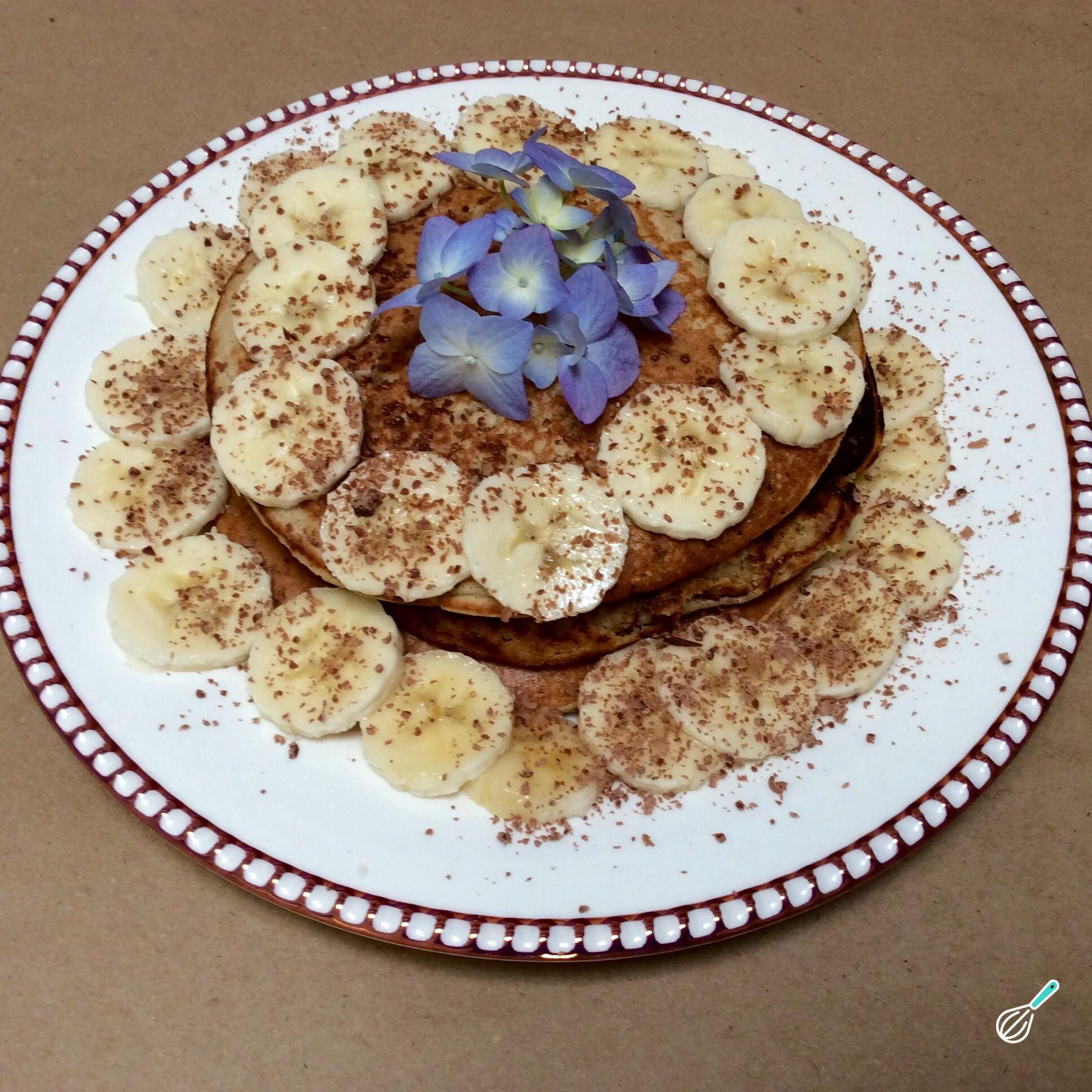 Retire a panqueca americana sem glúten e repita até esgotar toda a massa. Sirva com raspas de chocolate e fruta (neste caso escolhi banana) ou café da manhã ou ao lanche. Bom apetite!