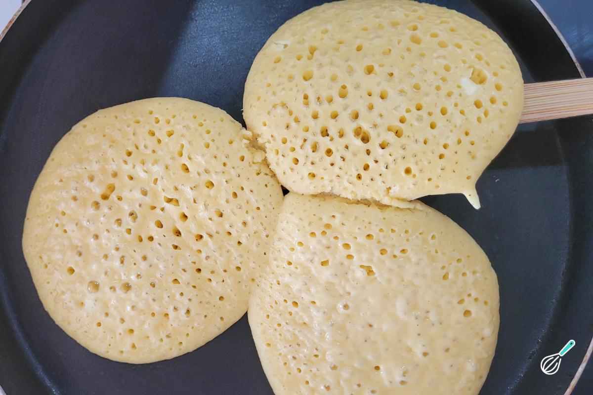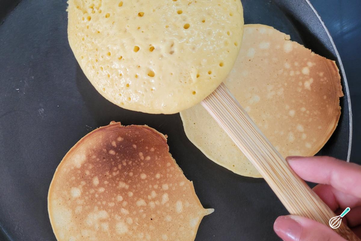 Quando a massa estiver pronta para virar, ela desgruda naturalmente da frigideira.