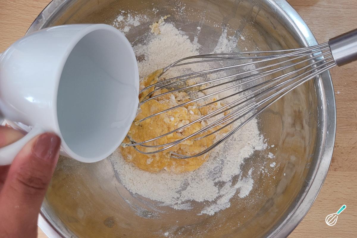 Vá adicionando a água aos poucos até ter uma massa fluida.