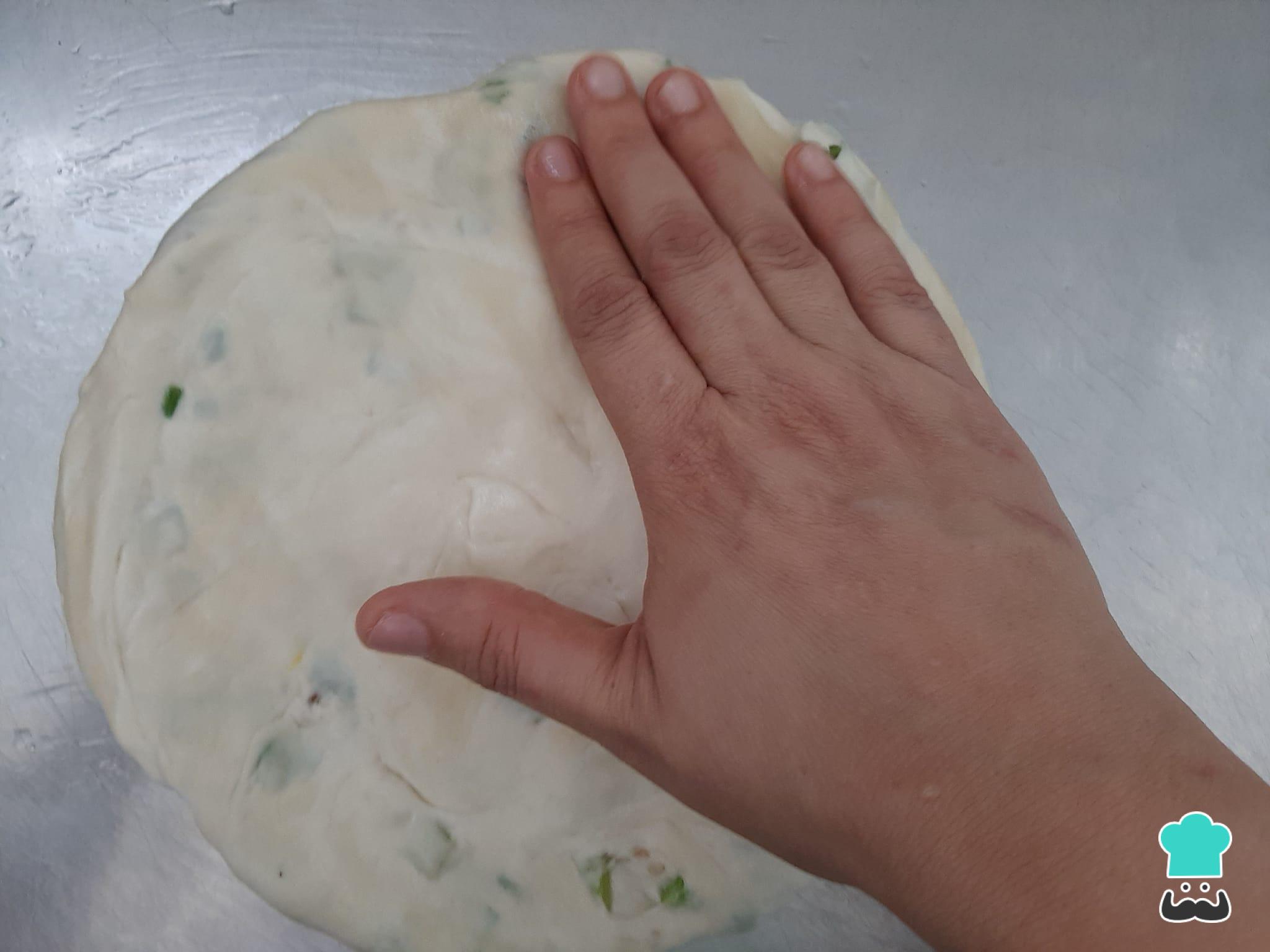 Em seguida, abra cada porção de massa com as mãos (na bancada com óleo, para não grudarem), formando círculos, como panquecas.