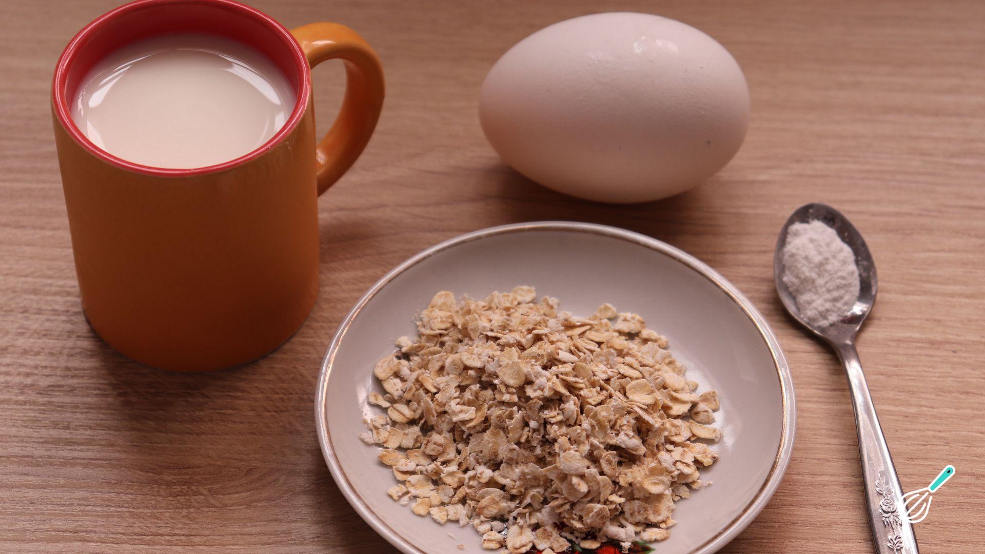 Comece separando os ingredientes para preparar a sua Panqueca com farinha de aveia.