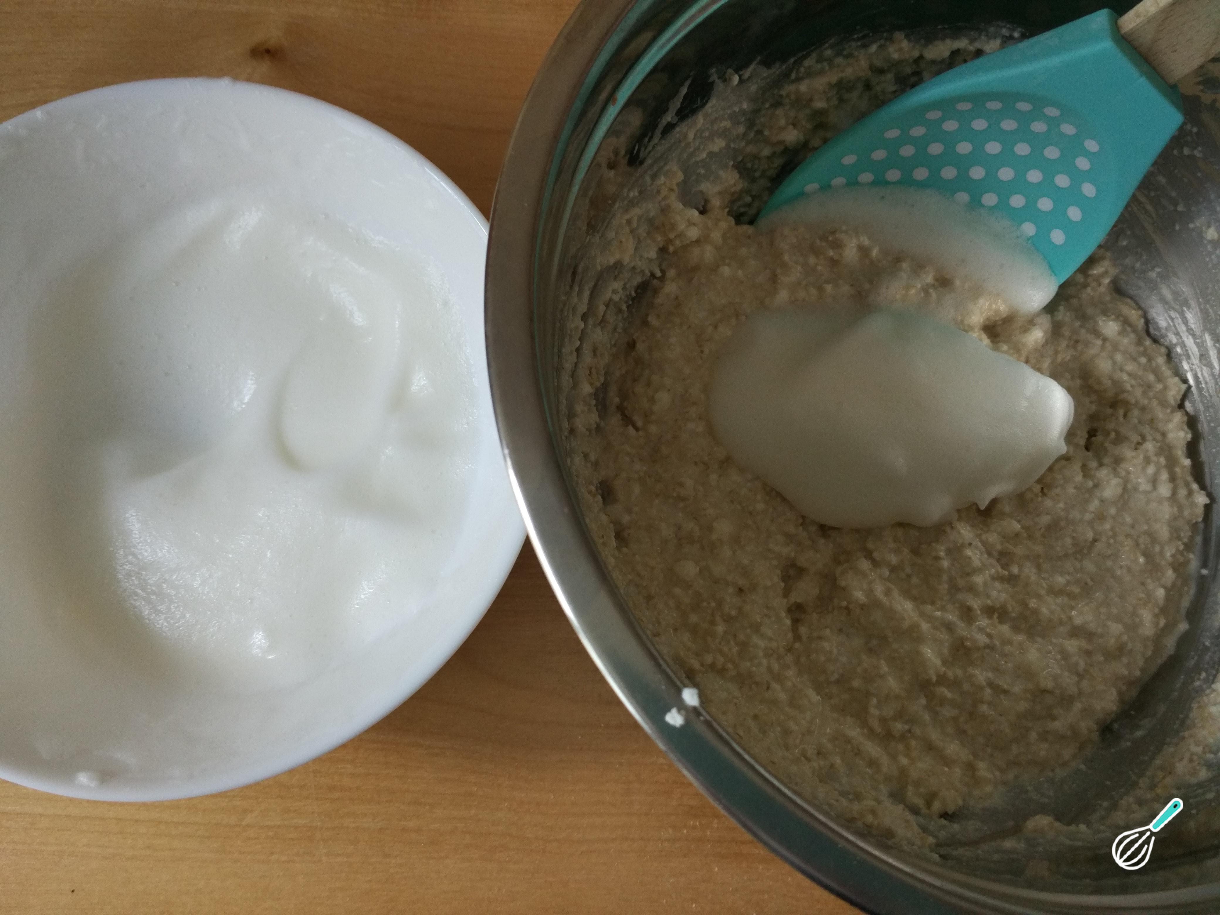 Bata as claras em ponto de neve (até obter uma espécie de nuvem branca) e adicione pouco a pouco à massa, fazendo movimentos envolventes para incorporar - deste jeito as panquecas ficam mais esponjosas e macias.