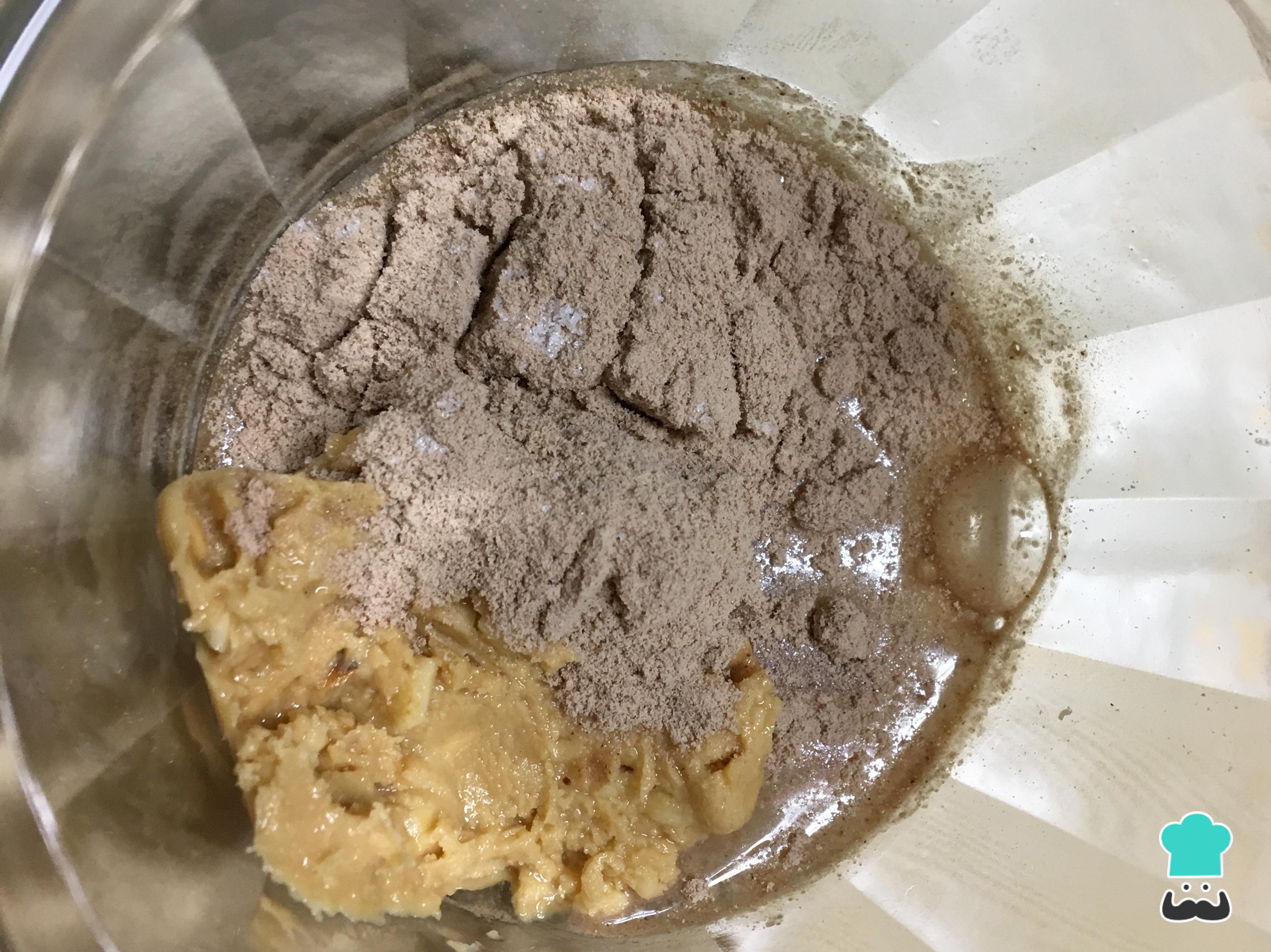 Para o recheio simplesmente misture a pasta de amendoim com o whey e a água até diluir e formar uma pastinha cremosa.