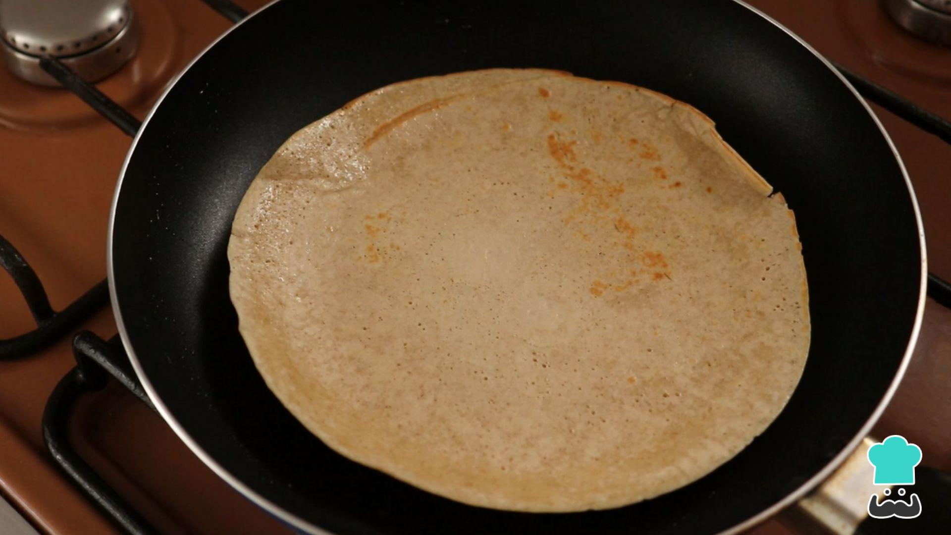 Leve uma frigideira ao fogo médio, coloque um pouquinho de azeite se achar necessário e despeje uma porção da massa - ela fica bem líquida mesmo, tá? Doure dos dois lados da panqueca e pronto!