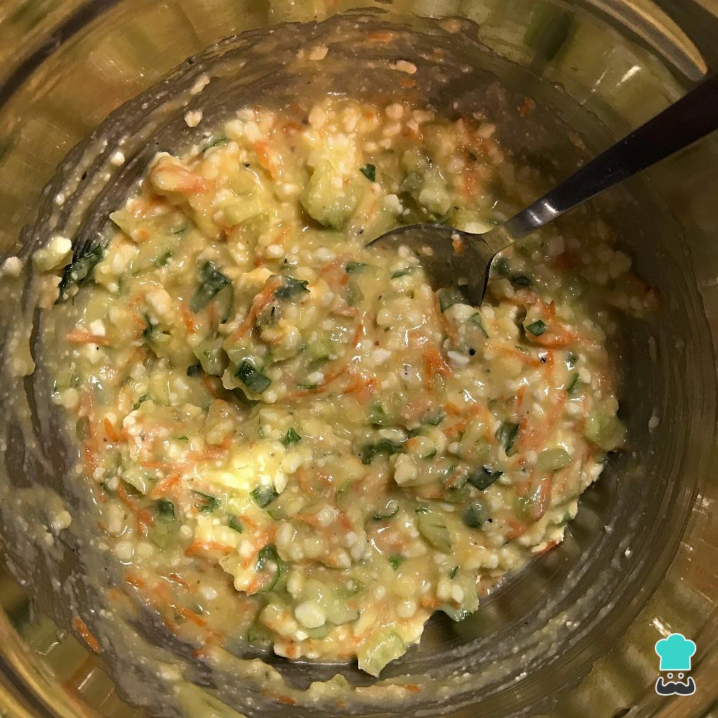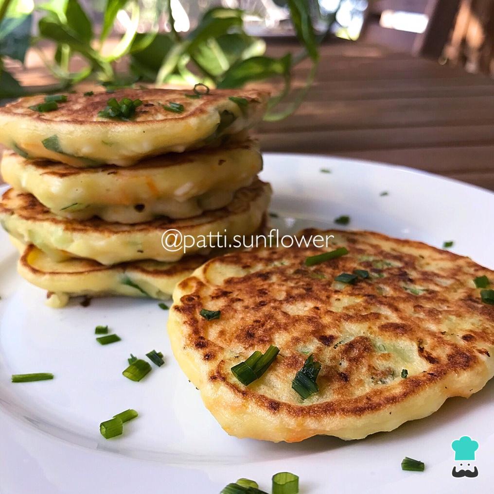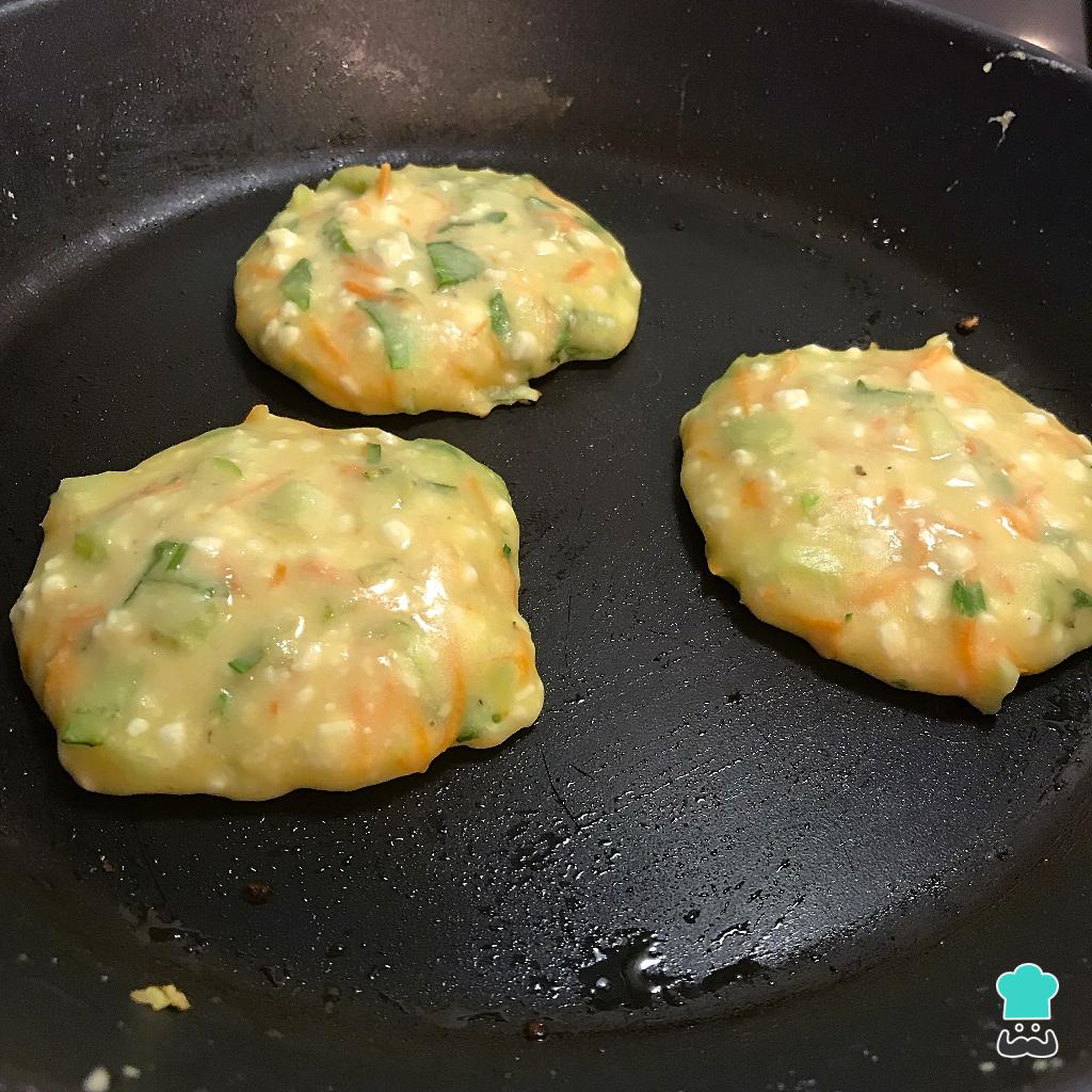 Aqueça uma frigideira e unte com um pouco de azeite. Coloque colheradas da massa e tampe a frigideira, até as panquequinhas ficarem consistentes, iguais às da foto. Então vire doure o outro lado.