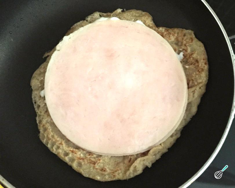 Coloque numa frigideira antiaderente, deixe cozinhar e vire quando conseguir. Coloque o recheio (eu usei requeijão zero e blanquet de peru).