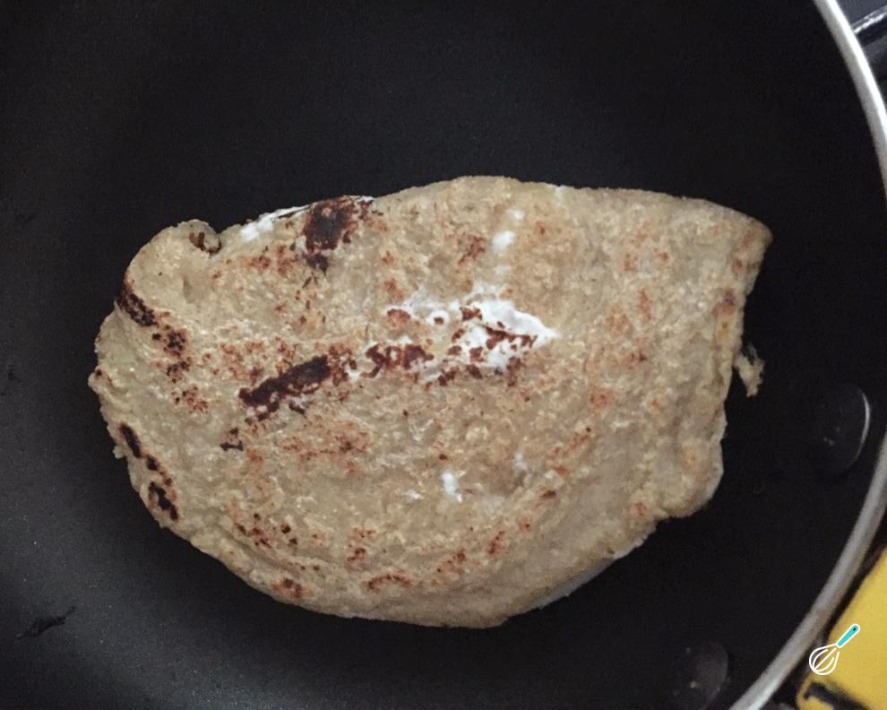 Vire a panqueca por cima dela mesma para formar uma meia-lua. Vire os lados e tire antes de queimar.