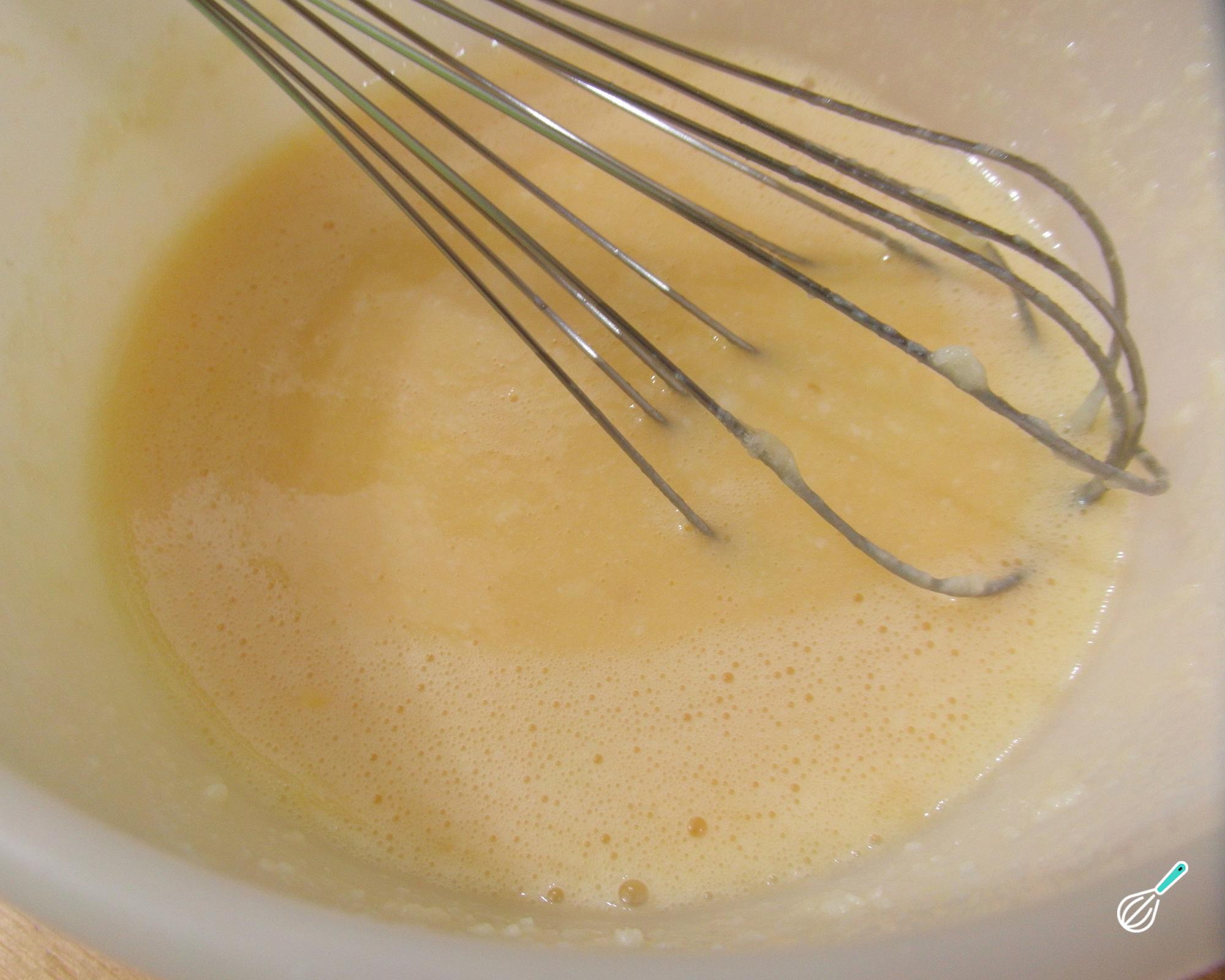 É bem fácil e rápido preparar estas panquecas light para o café da manhã ou lanche! Comece por misturar o óleo de coco com o mel. Acrescente os ovos, um de cada vez, misturando entre cada adição.