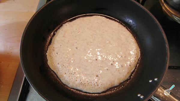 Com a massa pronta, poderá agora cozinhar a sua panqueca. Pré-aqueça uma frigideira com manteiga ou óleo e verta uma porção de massa de panqueca. Frite, quando começar a formar bolinhas, vire de lado e deixe por mais 30 a 40 segundos. Repita até esgotar a massa.