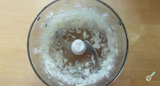 Pique a cebola e o alho finamente, com a ajuda de um processador de alimentos e leve a refogar em uma panela, juntamente com o azeite, ou com manteiga.