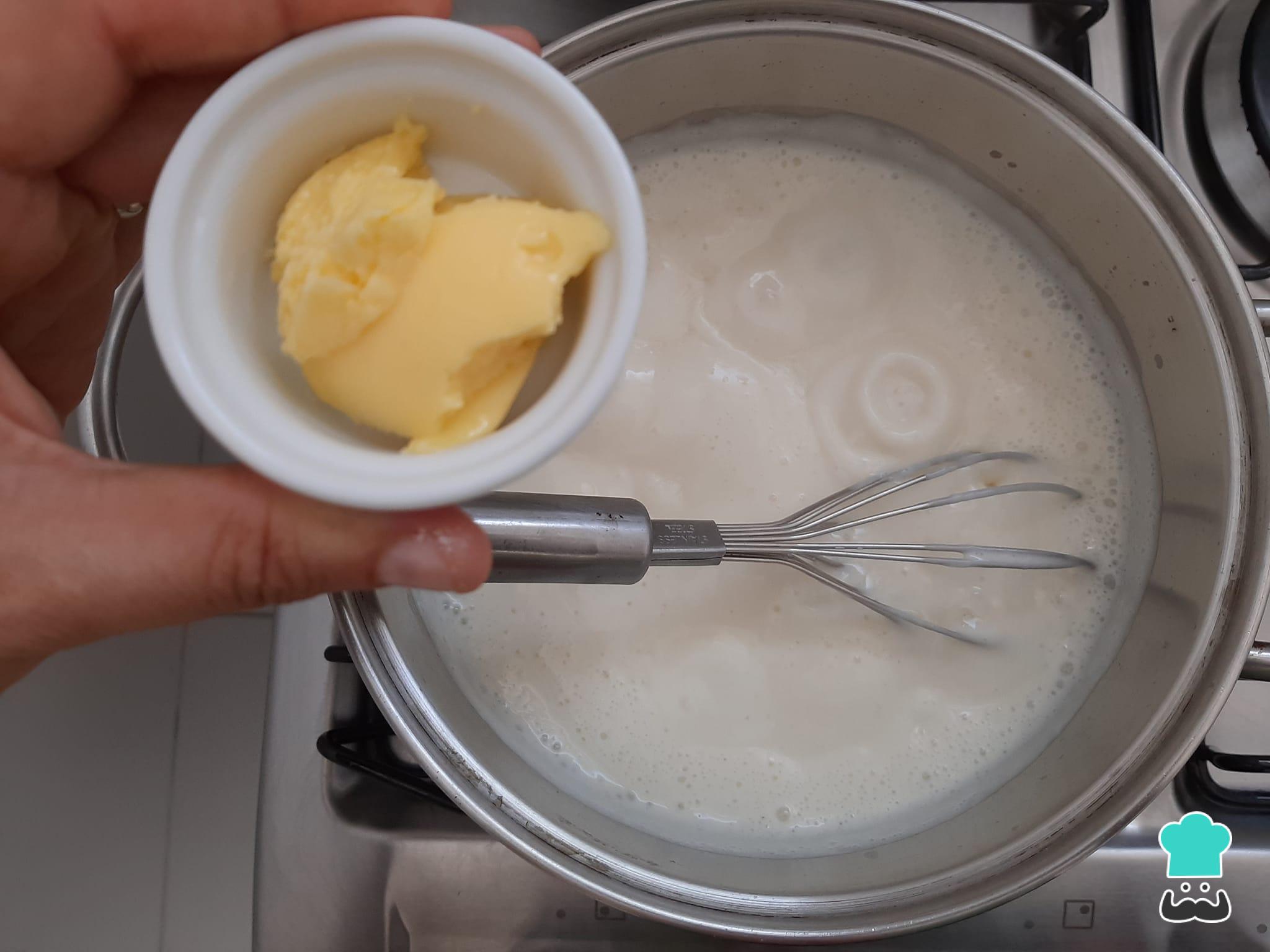 Junte a manteiga e misture bem. Deixe cozinhar por mais alguns minutos, sem parar de mexer.