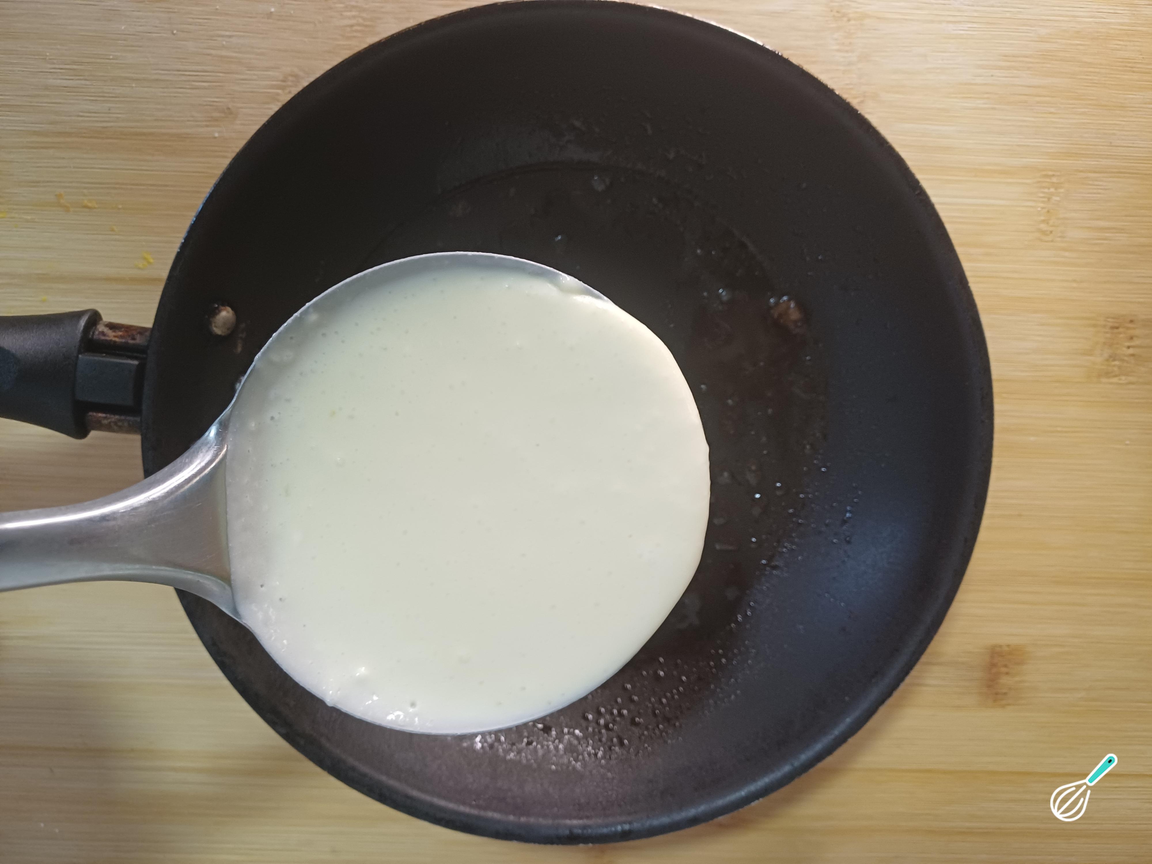 Dica: O ovo é fundamental para a textura da panqueca, por isso assegure-se de que ele esteja bem misturado ao líquido.