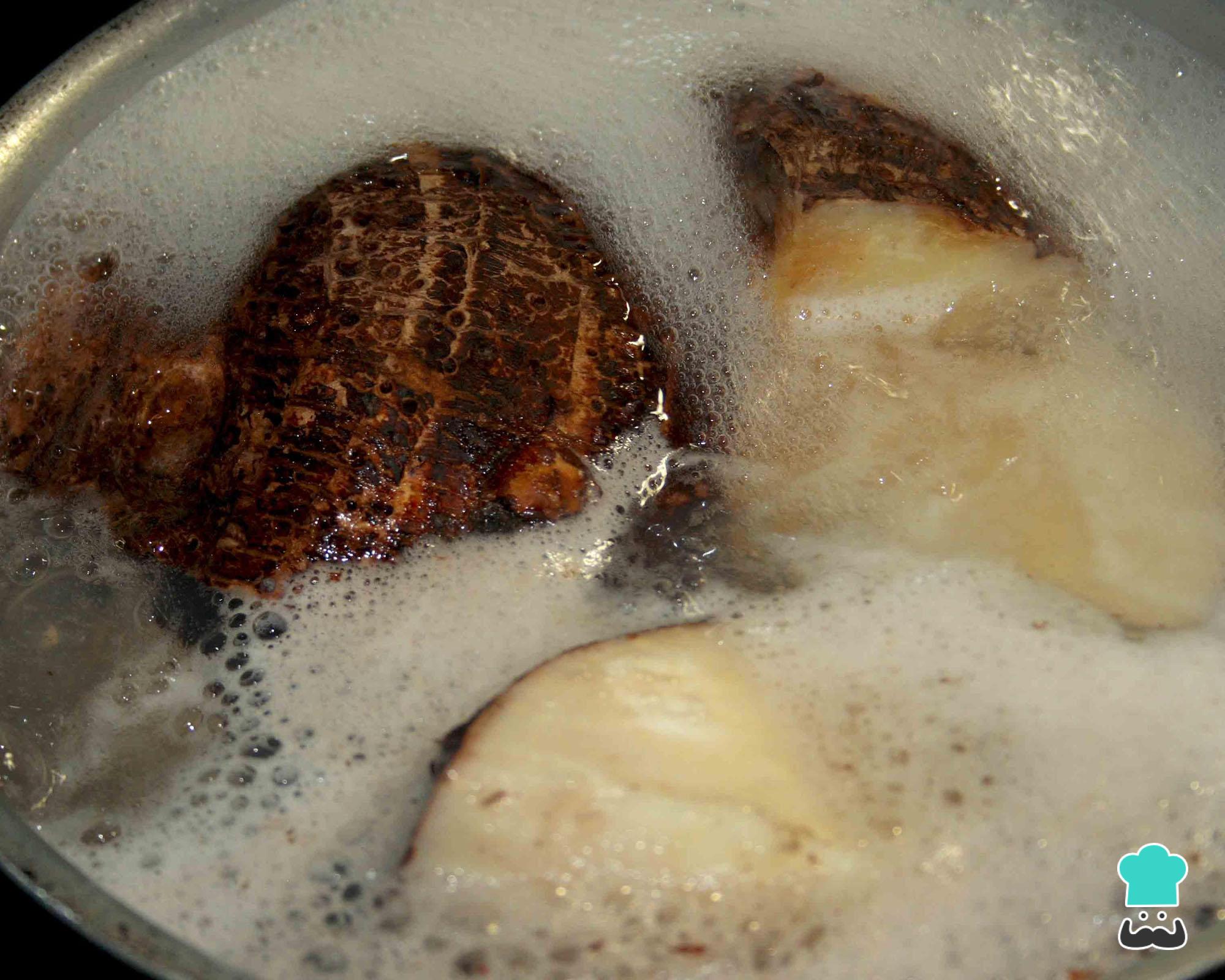 Para fazer esta receita de arepas de inhame comece por lavar bem os inhames sem descascar. Corte os inhames pela metade e coloque numa panela. Cubra com água e leve ao fogo médio para cozinhar por 20 minutos ou até ficarem bem macios.