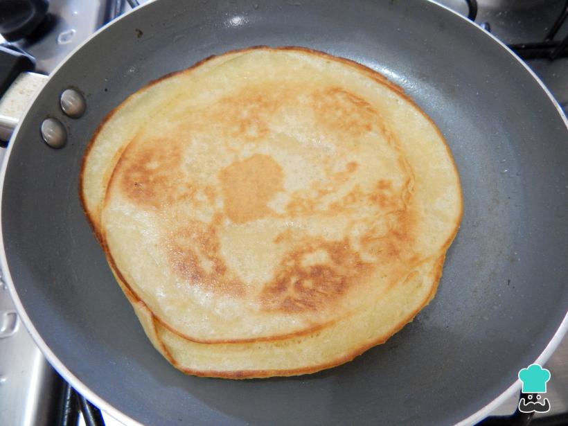 Retire a panqueca quando estiver dourada dos dois lados, e repita com a massa restante, untando novamente a frigideira se necessário.