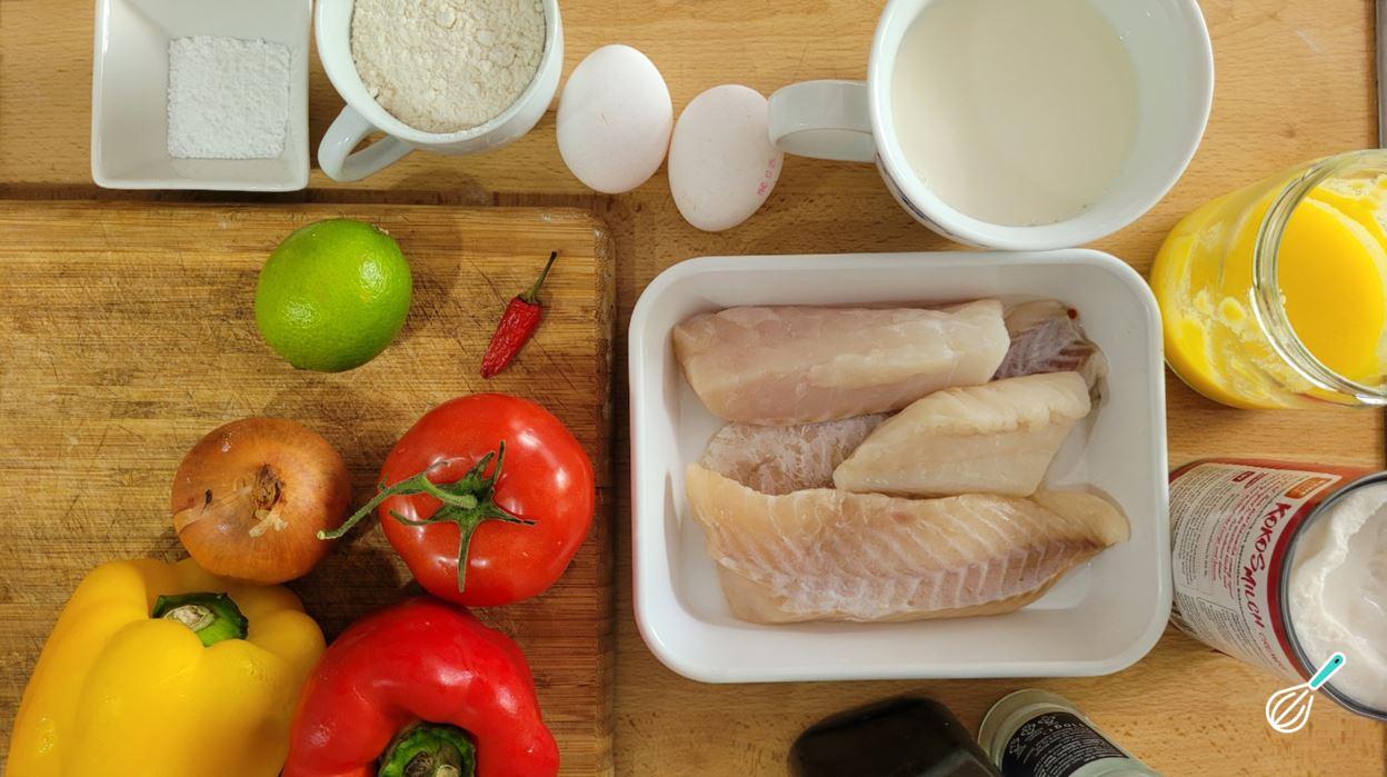 Separe os ingredientes para fazer sua panqueca de peixe.