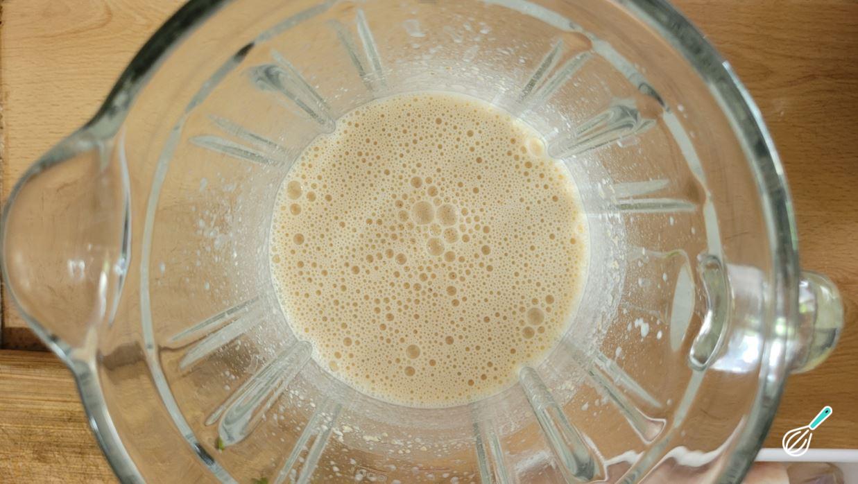 Comece fazendo a massa. Coloque todos os ingredientes em um liquidificador, colocando os líquidos por baixo para ajudar a bater.