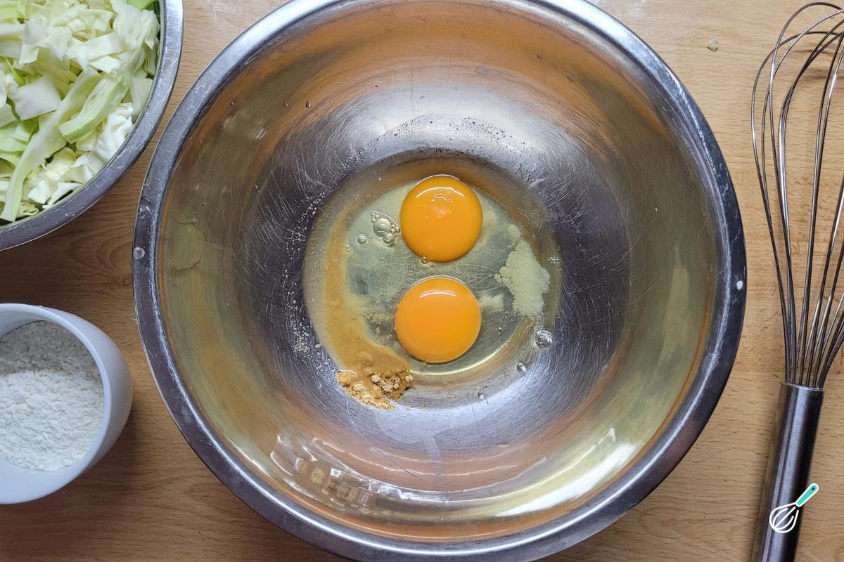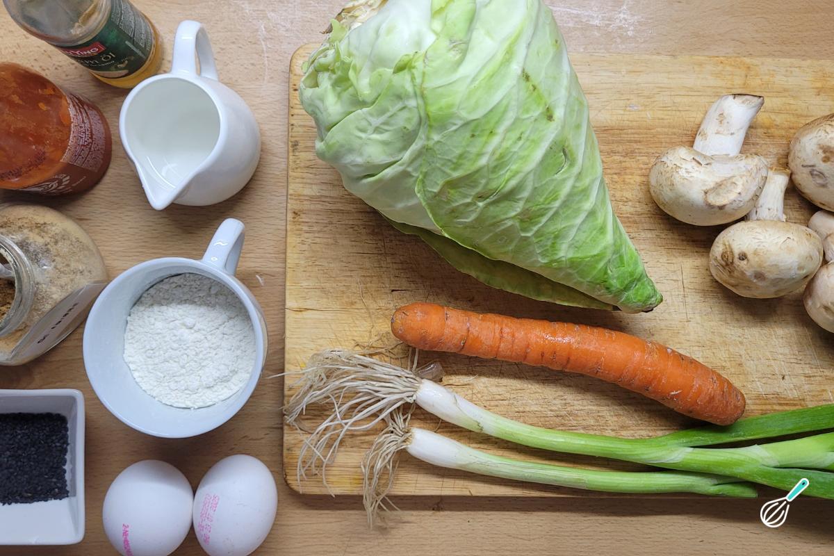 Separe os ingredientes para fazer sua panqueca de repolho.