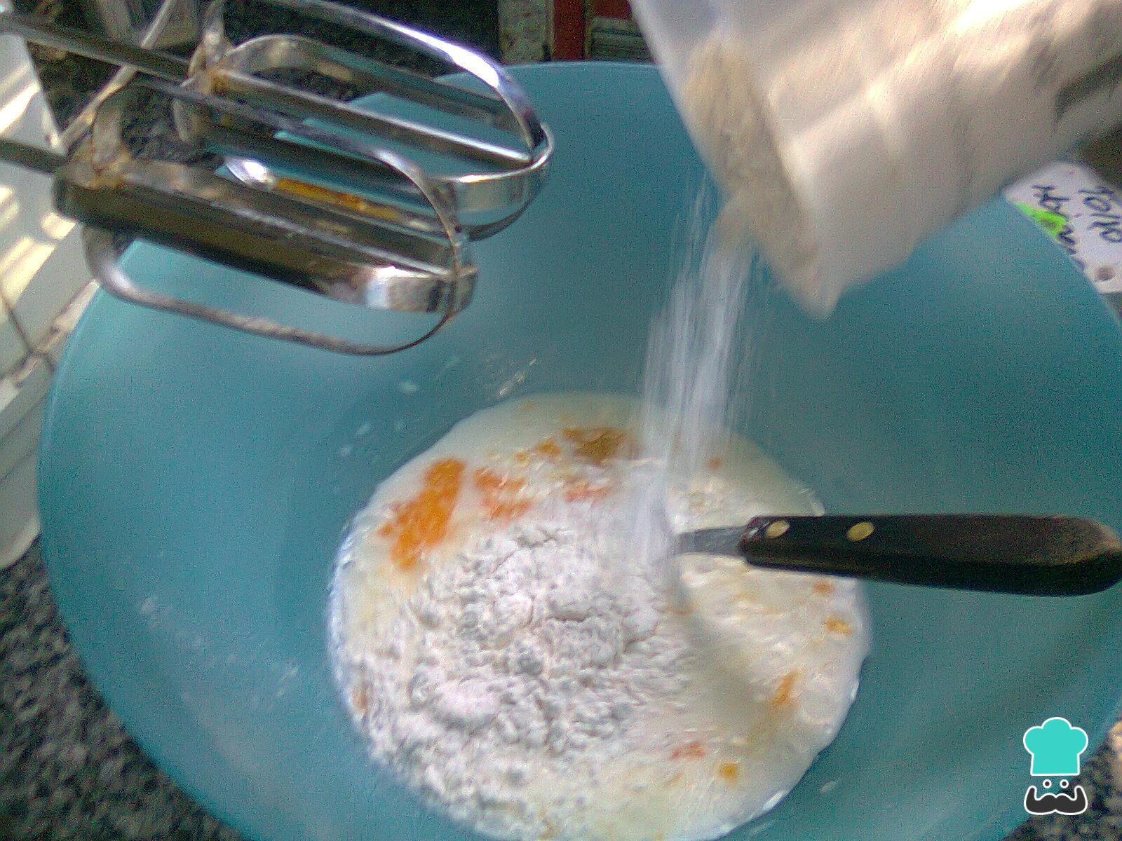 Parar preparar essa panqueca doce simples, comece por colocar todos os ingredientes em uma tigela, seguindo a mesma ordem da lista.