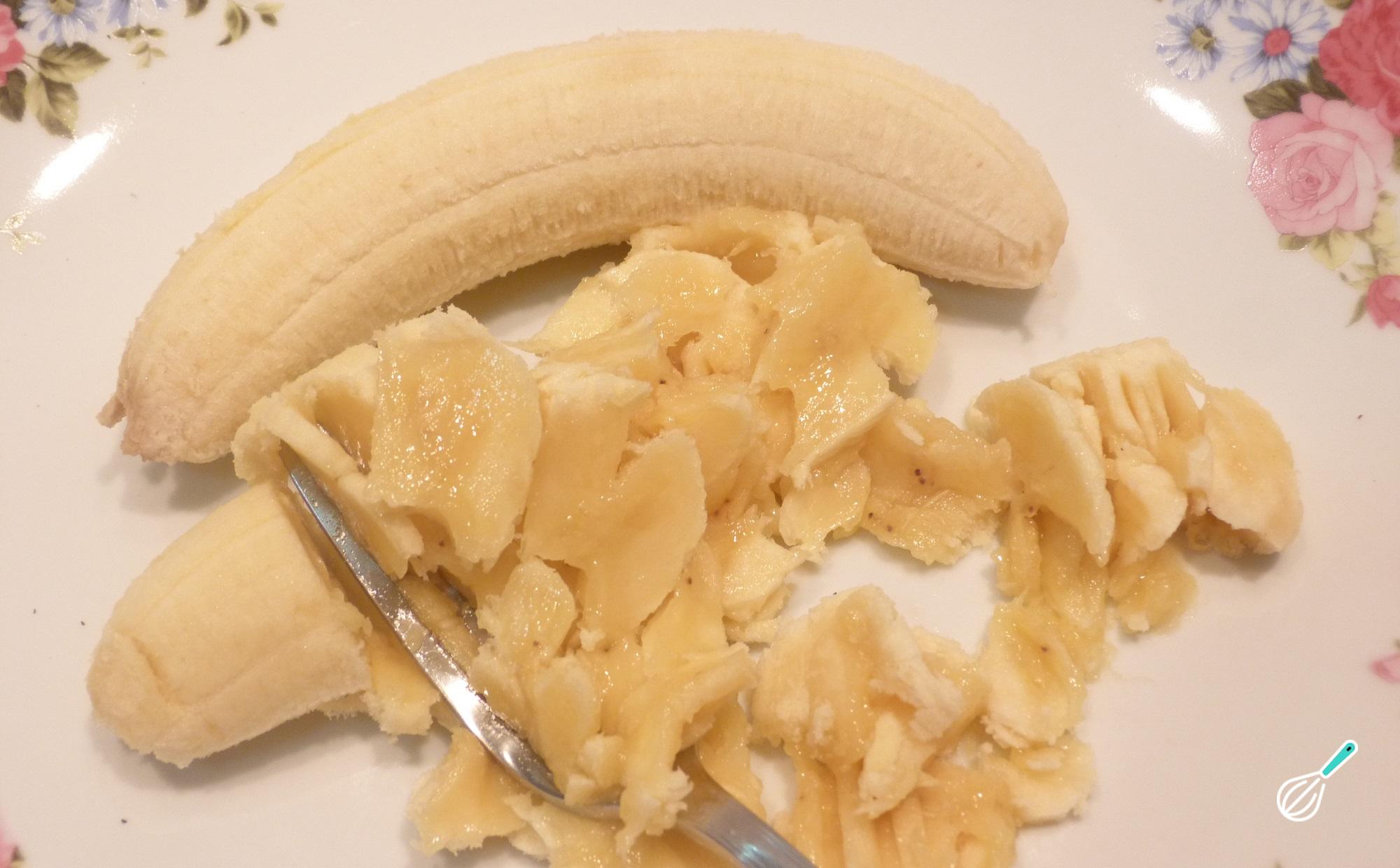 Para preparar estas deliciosas panquecas paleo comece por amassar bem as bananas, até que fiquem reduzidas a purê.
