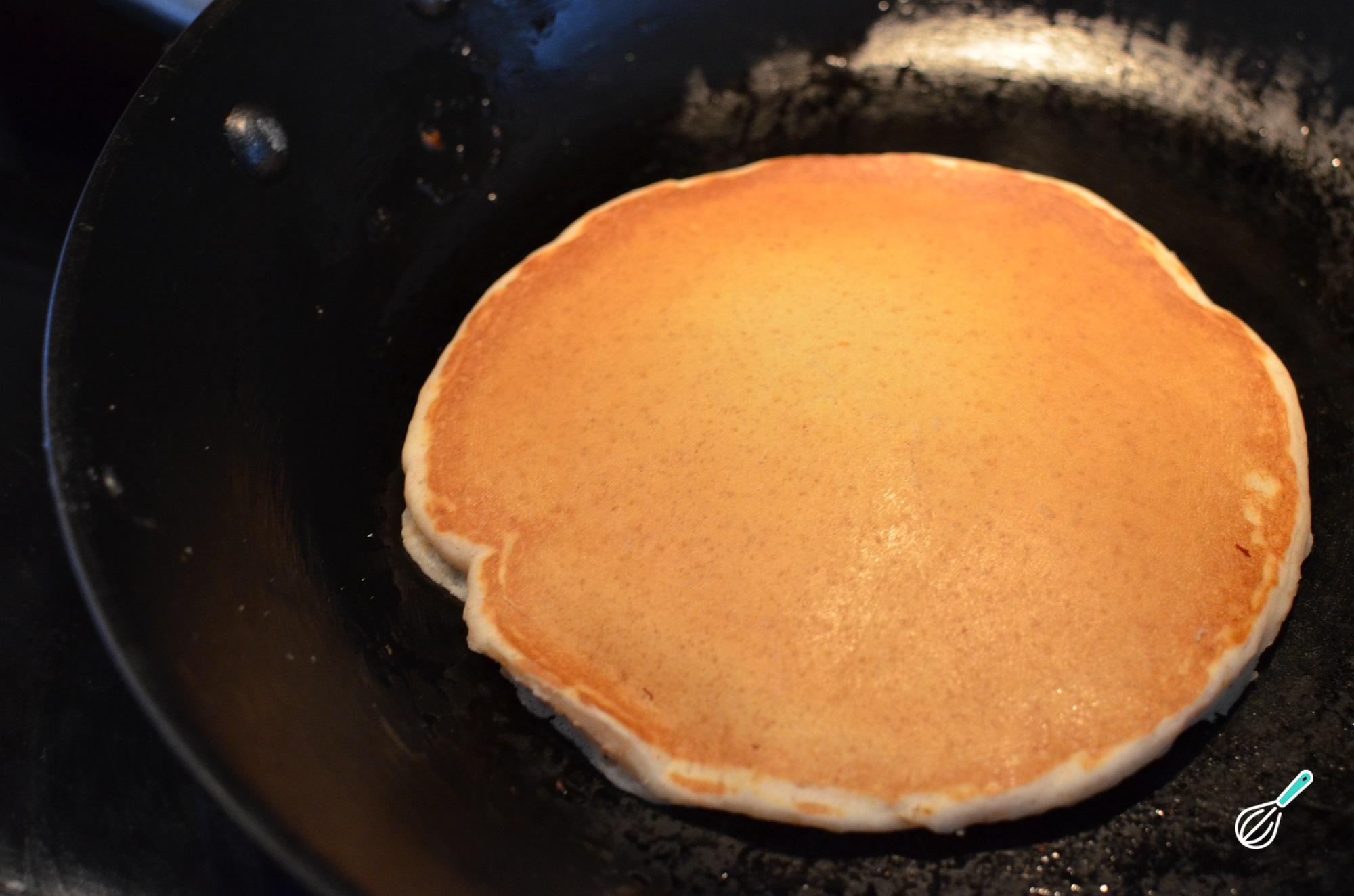 Unte uma frigideira com o óleo de coco restante. Leve ao fogo médio e, quando estiver bem quente, coloque uma porção da massa de panqueca. Conte 1-2 minutos para virar com a ajuda de uma espátula.