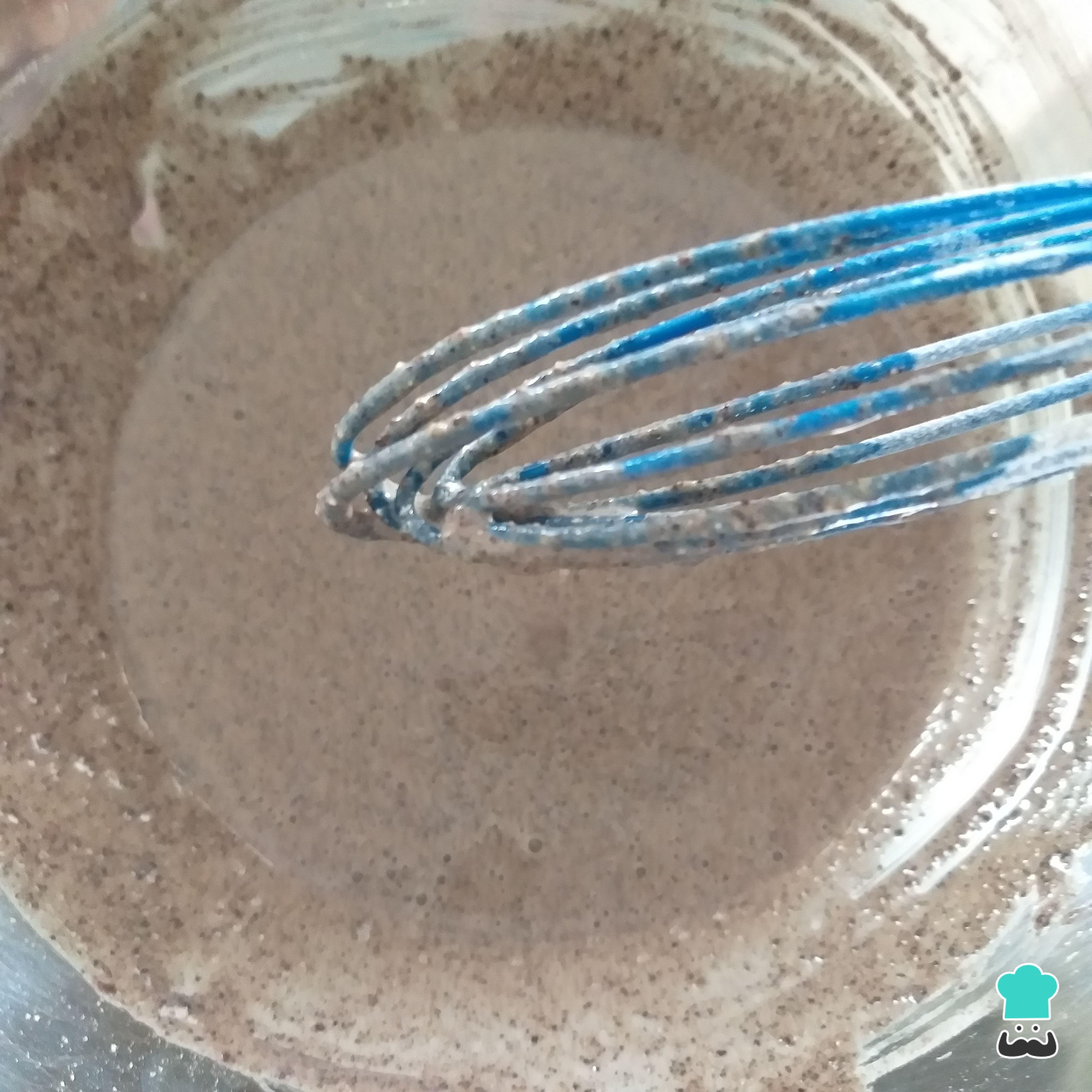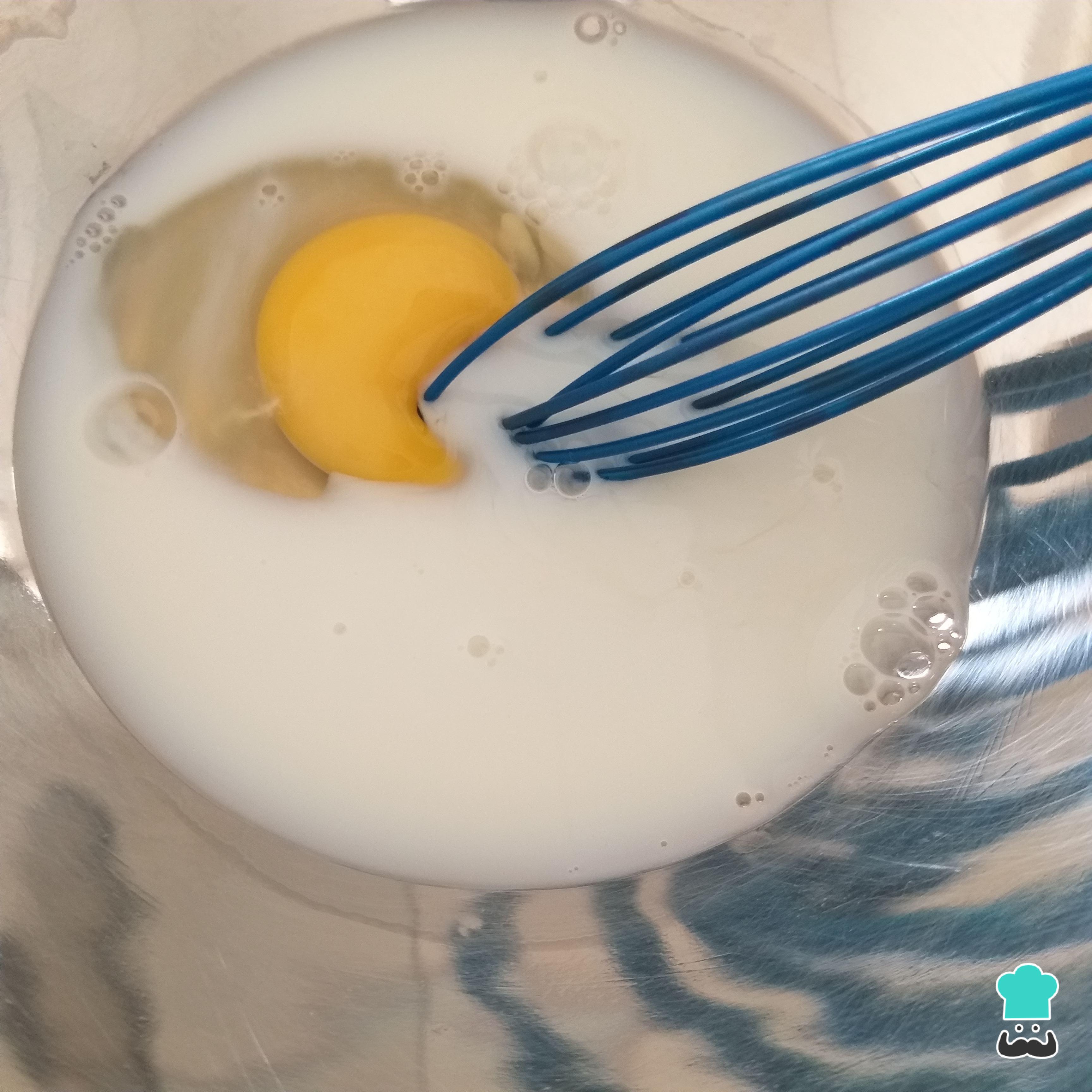 Em uma vasilha misture bem o ovo e o leite com o auxílio de um fouet. Se preferir, poderá preparar esta panqueca salgada no liquidificador.