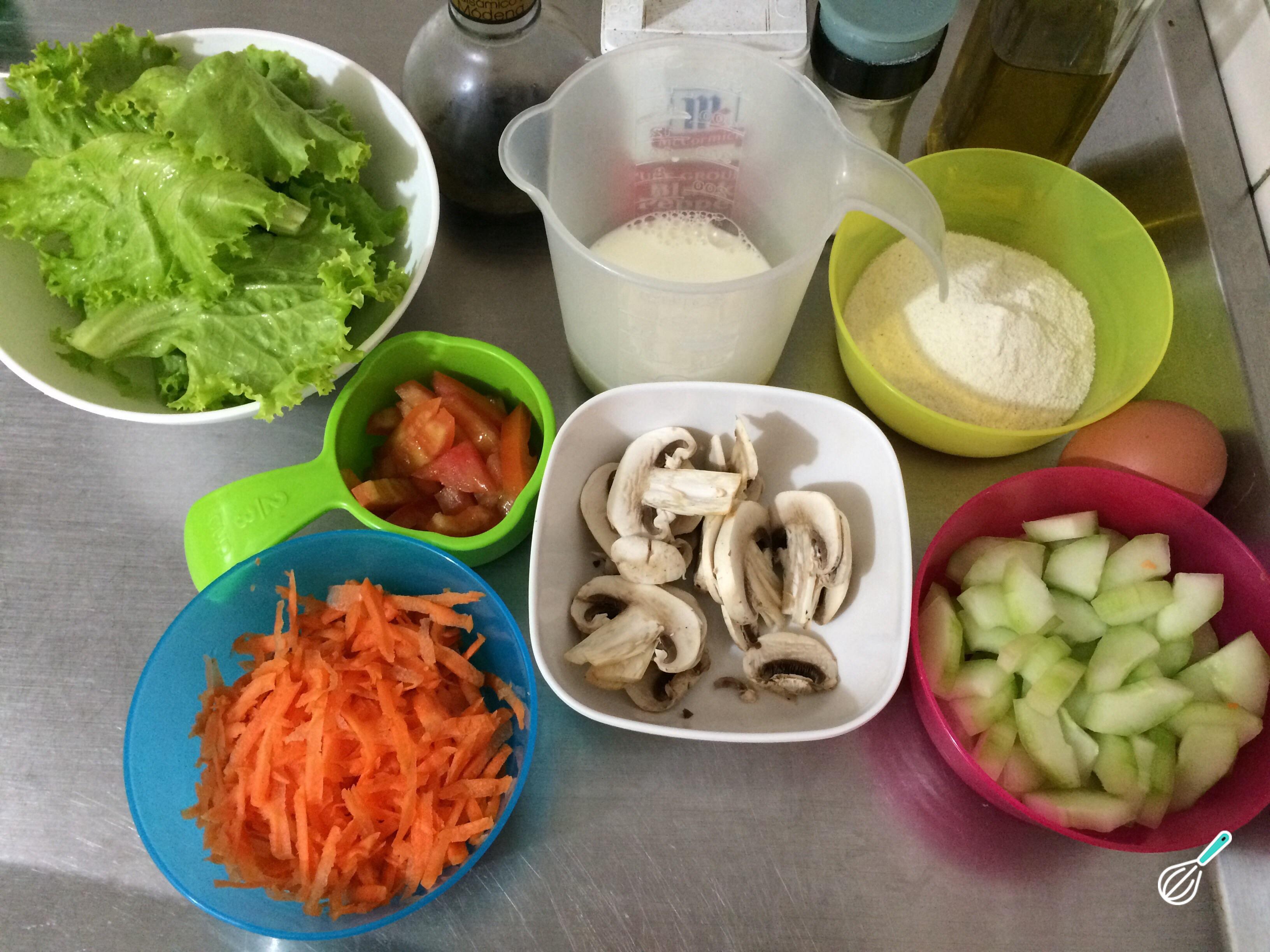 Esta receita diferente é perfeita para um almoço ou jantar leve, sobretudo se você estiver seguindo uma dieta de emagrecimento. Começamos por preparar panquecas salgadas, que depois recheamos com ingredientes de salada temperados de forma simples e pouco calórica.