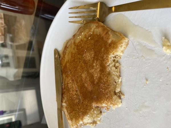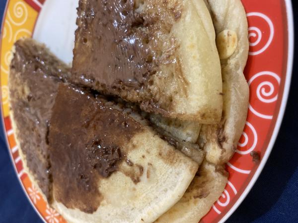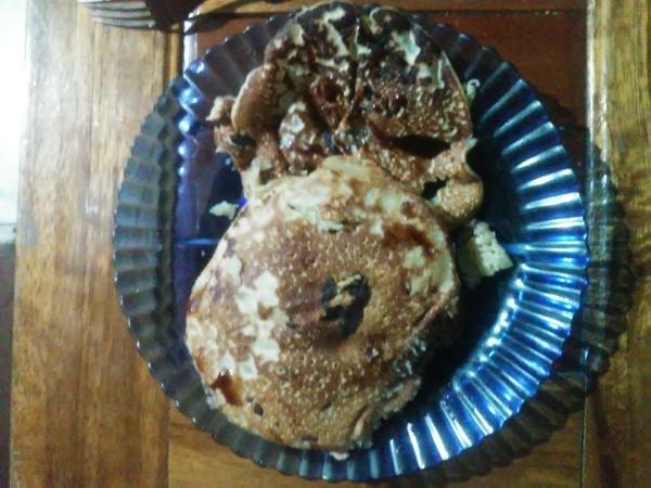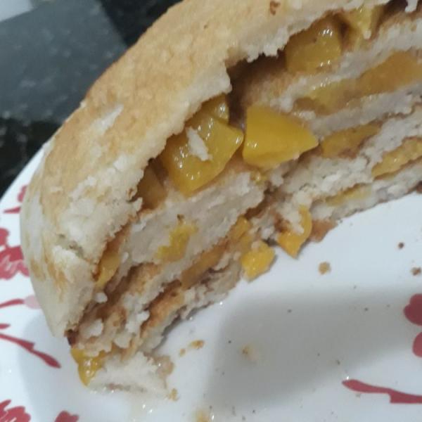 panqueca com pessego em calda...