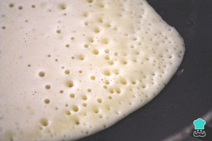Quando a massa começar borbulhando, como na fotografia, vire ao contrário para cozinhar também do outro lado. Conte 1-2 minutos, retire para um prato com papel absorvente e repita com a massa restante.